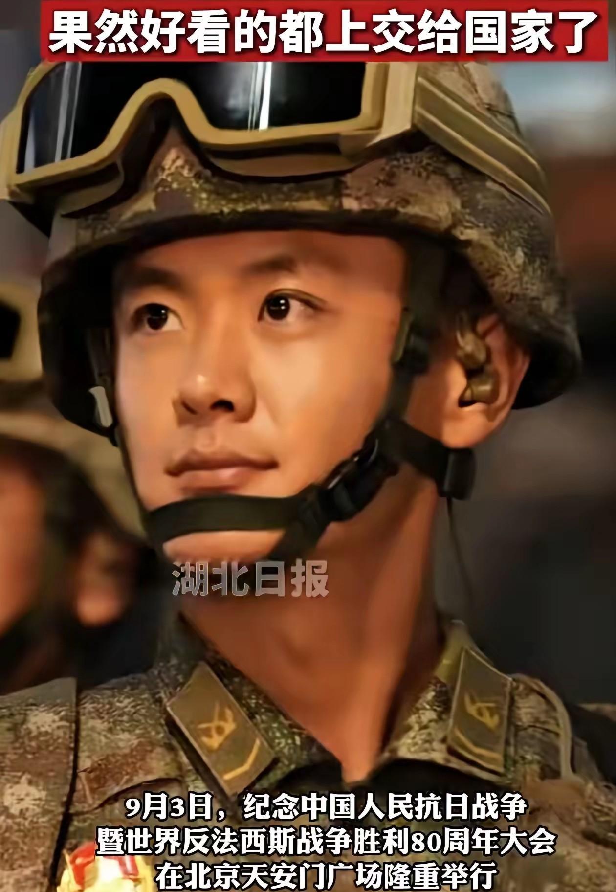 第一张照片和第四张照片可以放到小学语文课本上。 第一张两个人是双胞胎兄弟,发现了吗? 这次阅兵和以前不一样,全都睁大了眼睛,鼻孔微张,sha气很重。 第四张这位女兵,脸上布满了汗水,下巴上的汗水汇集成滴,但是装容一点也没有花,特别神奇。 看完这两张照片大为震撼。 网友调侃果然好看的都上交国家了!