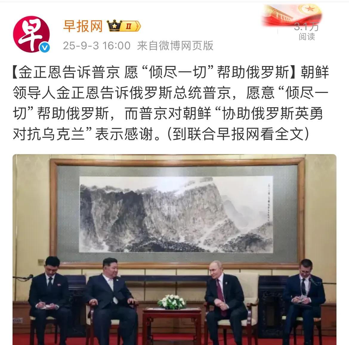 【真朋友,朝鲜愿意倾尽全力支持俄罗斯】 据外媒消息,朝鲜领导人金正恩在与俄罗斯总