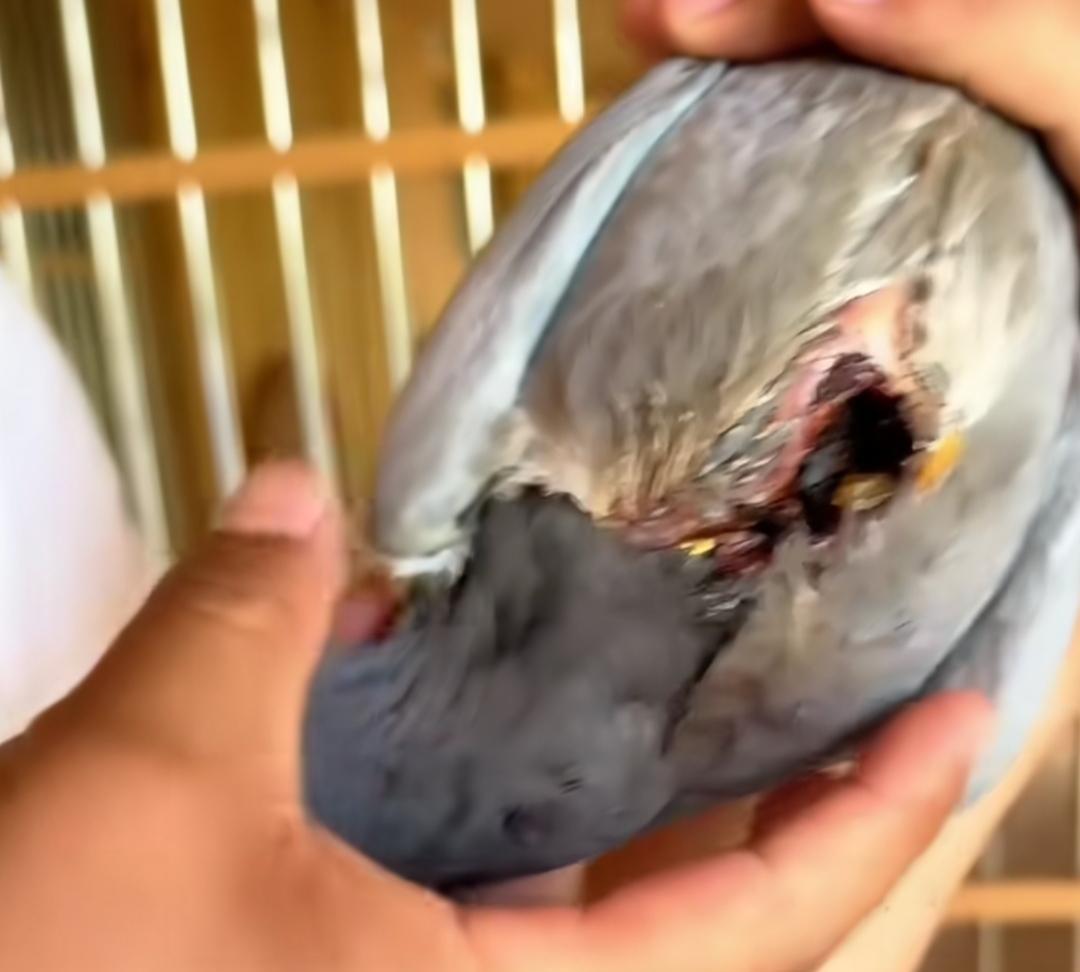 这是一羽不死必归的英雄鸽 千里迢迢的带着伤飞回主人家 忍着饥渴伤痛完成了任务,也没落队的回来了 看着边喝水边从腹腔漏水 不觉让人觉得心疼 也不知道是哪个挨千刀的,下这么狠的手 愿这只英雄鸽早日康复!