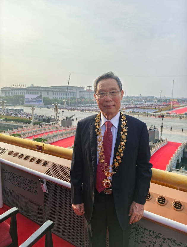 今天九三大阅兵当天直播电视镜头给过丘成桐特写。