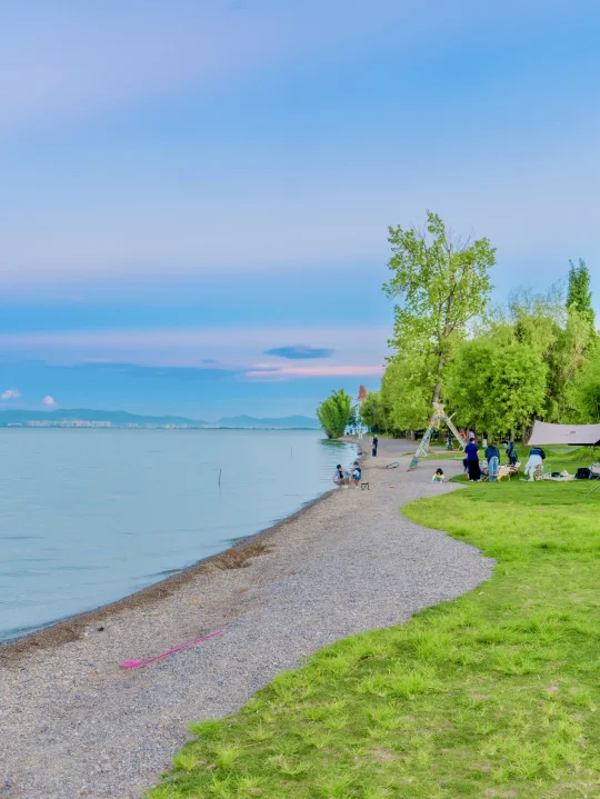 偶然发现的昆明小众露营地 秋日的滇池水很清澈 这里可以发呆、露营🏕️听海🌊 📍定位:直接导航“杨林港”,从昆明市区出发大概40分钟车程,到了以后看到图7的路牌转进去停车,然后走出停车场左转(图8)穿过桥洞就到了。