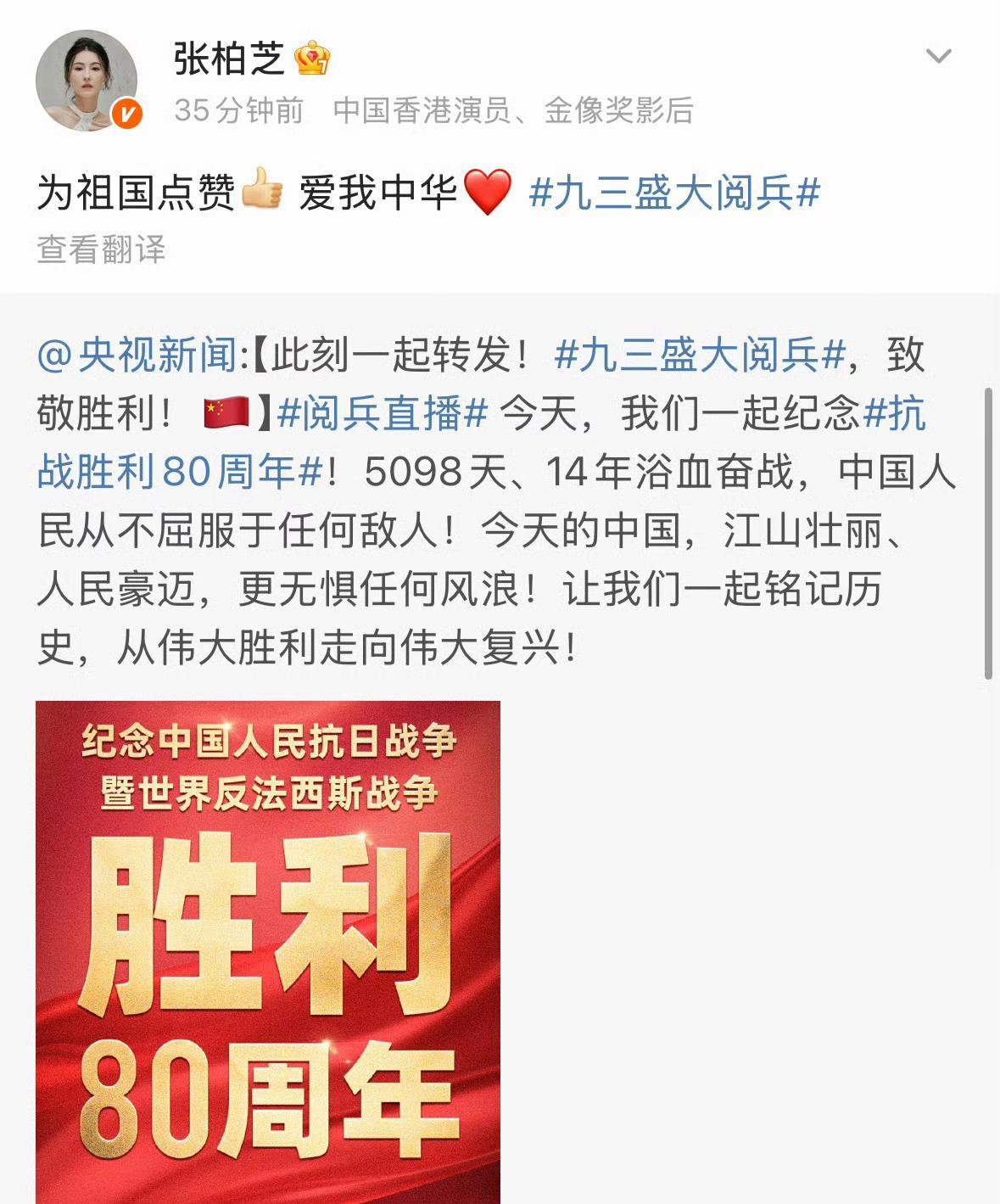 港台艺人都学学张柏芝呢,人家在外网不仅发了图还发了动态。 张柏芝个人简介标了“中国香港演员、金像奖影后”的身份,这点挺戳我的。 她人在香港,又常在内地工作,这种自然流露的归属感,比什么口号都动人。