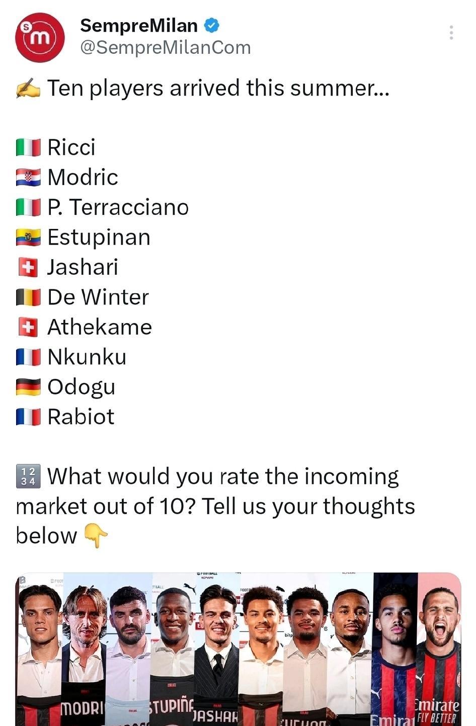 米兰的转会咋说呢,补强了中后场,球员能力是否适合米兰那是比赛的事情,至少我们买了看起来符合需求的球员,但我们也出售了一大部分重要的轮换球员,毕竟比赛不仅仅是场上11人的事情,替补席在很多比赛中起到的作用同样至关重要。 米兰的夏季窗口是欧洲最热闹的球队,一顿操作猛如虎,一看还是漏洞多,唉,说红鸟不花钱吧,客观讲在今年没欧冠的情况下,这个投入还得兼顾明年财政没有欧冠收入的平衡问题,应该是可以啦,非常可以。多年被诟病的中场终于得到前所未有的重视,令人欣慰。但是吧,由于出售球员所导致边路羸弱,锋线单薄,这是后患。 造成边路羸弱,锋线单薄问题有天灾也有人祸,天灾就是加沙里受伤,加沙里受伤让阿莱格里必须要买入小英雄拉比奥特,而不得不出售穆萨,一出一入,我们重要的边路轮换没了,博尼法斯体检合格租借去不莱梅俱乐部,说明当时无论是记者还是勒沃库森经理对米兰都是了解的,米兰就是想压价,但没想到被人家洞悉了意图,再去谈已经被永久关闭了谈判,中锋问题是自己的小心思弄出问题的,米兰主力阵容肯定没问题,但大前提就是主力可以不受伤,一旦受伤我们惨不忍睹的替补席就要带来恶果了。