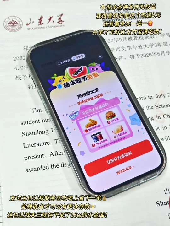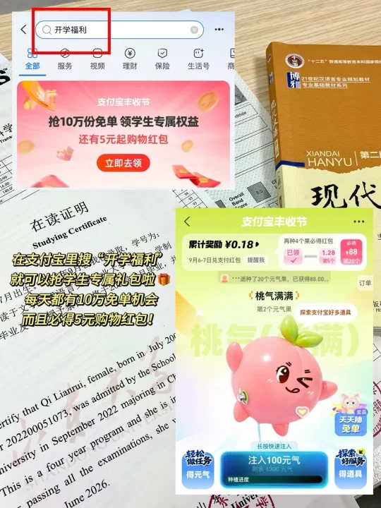 开学季咱不白来,让支付宝请咱吃顿好吃的吧~