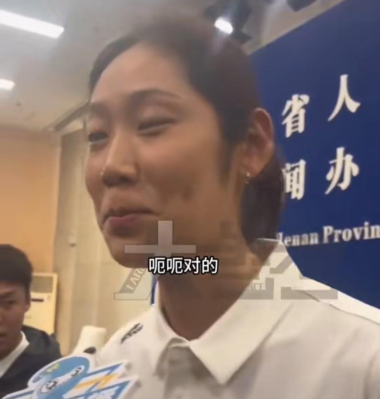 朱婷成熟了。她左手佩戴黑色护腕出席河南省女排城市联赛的发布会,被记者提问了“20