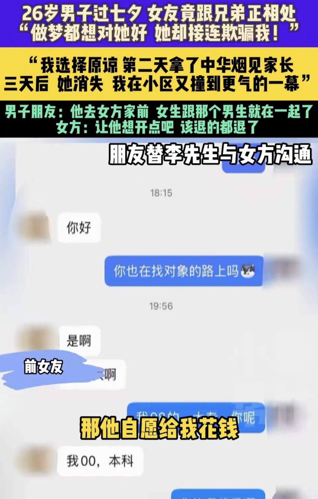 河南开封,男子跟朋友说:我谈恋爱了。朋友说:我也接触一个女孩,随即发来女孩视频,男子一看懵了:这不我女朋友嘛!男子因为太爱,选择原谅女友,第2天拿了2条中华烟,还有酒等礼品见了女方家长,谁料,3天后,女友消失,男子再去找女友时,眼前的一幕,又差点给他气过去! 在七夕前夕,26岁的小李满心欢喜的把自己恋爱的消息,告诉了好朋友,说他遇到了一个最好的女孩。 朋友替他高兴,也告诉小李,我也正在接触一个女孩,还真挺好的。 小李一听非常开心,干脆和朋友提议,不行,咱们带着各自的女友一起过七夕吧。 朋友答应了,还给小李发了他接触的那个女孩的视频。 小李无比期待,想看看朋友喜欢的女孩长啥样,结果,打开视频一看,差点惊掉下巴,不禁脱口而出:“这不是我女朋友吗?” 小李整个人都懵了,这么离谱的事怎么会发生在自己身上,他一直说女朋友是自己这辈子遇到的最好的女孩了,她会给自己夹菜,还会问他渴不渴。她那么会关心人,怎么会这样? 随后,小李的朋友把和女孩的聊天截图发给了小李,她竟然说她没对象。 朋友告诉小李,他是在某个直播间下面评论区认识的女孩。 小李有些疑惑,自己也是在这个直播间评论区认识的女朋友,不会这么巧合吧! 不过,小李还是觉得女朋友人太好了,心里放不下她,于是,他选择了原谅。 第二天,小李买了两条中华烟,一箱酒,满怀期待的去见了女方家长。 小李觉得女友的妈妈,对自己还挺认可,让他对二人的未来充满了希望。 然而,三天后,小李就联系不上女朋友了,他什么心思都没有了,就想找到她。 为此,小李跑到女友的小区找,眼前的一幕,差点给他气晕过去。 女朋友和一个男子手牵手,那男子还给她买了东西,两人在分别的时候,还来了一个拥抱,男子还塞给女朋友一个红包。 小李当时虽然气愤,但是,到底忍着等到男子出来,问他们是什么关系?男子告诉他说,是我女朋友。 随后小李一深问,才得知,这个男子也是通过直播间评论区认识的女友,而且,男子认识女友比小李还要早,也见了女方家长。 小李又想起一件事,之前他去找女友时,她抱着一大束粉色玫瑰花,他还问是谁送的,女友说是帮哥哥给嫂子拿的,他当时信以为真。 后来,小李听女友小区里的人说,七夕那天,女友收到了好多束红玫瑰。 小李是又伤心又气愤,加上自己的朋友,还有那名男子,如此相同的遭遇,他说:怎么感觉女友不是为了谈恋爱,就是为了骗人骗钱。 小李算了一下,和女友在一起一个月刷了6000来块钱,听那个男子说,一个多月给女方花了10000多。 小李发现女友真面目后,他的朋友也帮着和女方沟通了一下,没想到,女方却说:“唉!叫他想开点吧,我跟你说,他是不甘心,那是他自愿给我花钱,我该退的我都退了。” 看到小李的遭遇,也是让人感叹,他知道女友有情况,心里放不下感情,还选择原谅,结果被坑的更惨。 有人说,听到哥们说这是她这辈子遇到最好的女孩,莫名有种心疼他,这样的女人还有心思要她,看来也是怕打光棍,也劝这个兄弟,这辈子还长,女的还很多。 1、也有人问,小李女友这样算不算诈骗? 《刑法》第266条规定:诈骗公私财物,数额较大的,处三年以下有期徒刑、拘役或者管制,并处或者单处罚金。 如果小李女友用虚假身份,同时与多人恋爱,来骗取财物,且主观上具有非法占有目的,也就是说她无还款意图、挥霍钱款,可能构成诈骗罪。 但小李需证明女友有“虚构事实或隐瞒真相”的证据,比如,女友谎称单身、编造理由索取财物等,而且,且骗取财物数额达到3000元以上的标准才能立案。 2、小李为见女方家长,买了中华烟、一箱酒等礼品,能否要求女方返还? 《民法典》第657条规定:赠与合同是赠与人将自己的财产无偿给予受赠人,受赠人表示接受赠与的合同。 小李买烟酒礼品去见女方家长,如果是以结婚为目的,属于“附条件赠与”。 如果,女方根本无恋爱或结婚意图,仅为骗取财物,则赠与合同的基础丧失,小李可主张撤销赠与并要求返还。 3、如果,小李这6000元是追女友打赏到平台,他能要回吗? 小李表示,和女友在一起一个月“刷”了6000多块,这很可能是在直播间打赏了。 小李在直播间的打赏行为通常会被认定为赠与合同。 赠与合同一旦成立,原则上不可撤销,除非存在法定撤销事由。 能否要求返还的关键,是要看对方是否存在欺诈或违背真实意思? 如果,小李能证明女友在直播间以“恋爱”为幌子诱导打赏,实际上,女友同时与多人交往、虚构身份,则可能构成“欺诈”,那么,小李若证据充分的情况下,有权请求撤销赠与,并要求女方返还财产。 最后想说,网络交友有风险,尤其短时间恋爱涉及金钱,一定要提高警惕。 #秋日生活打卡季#