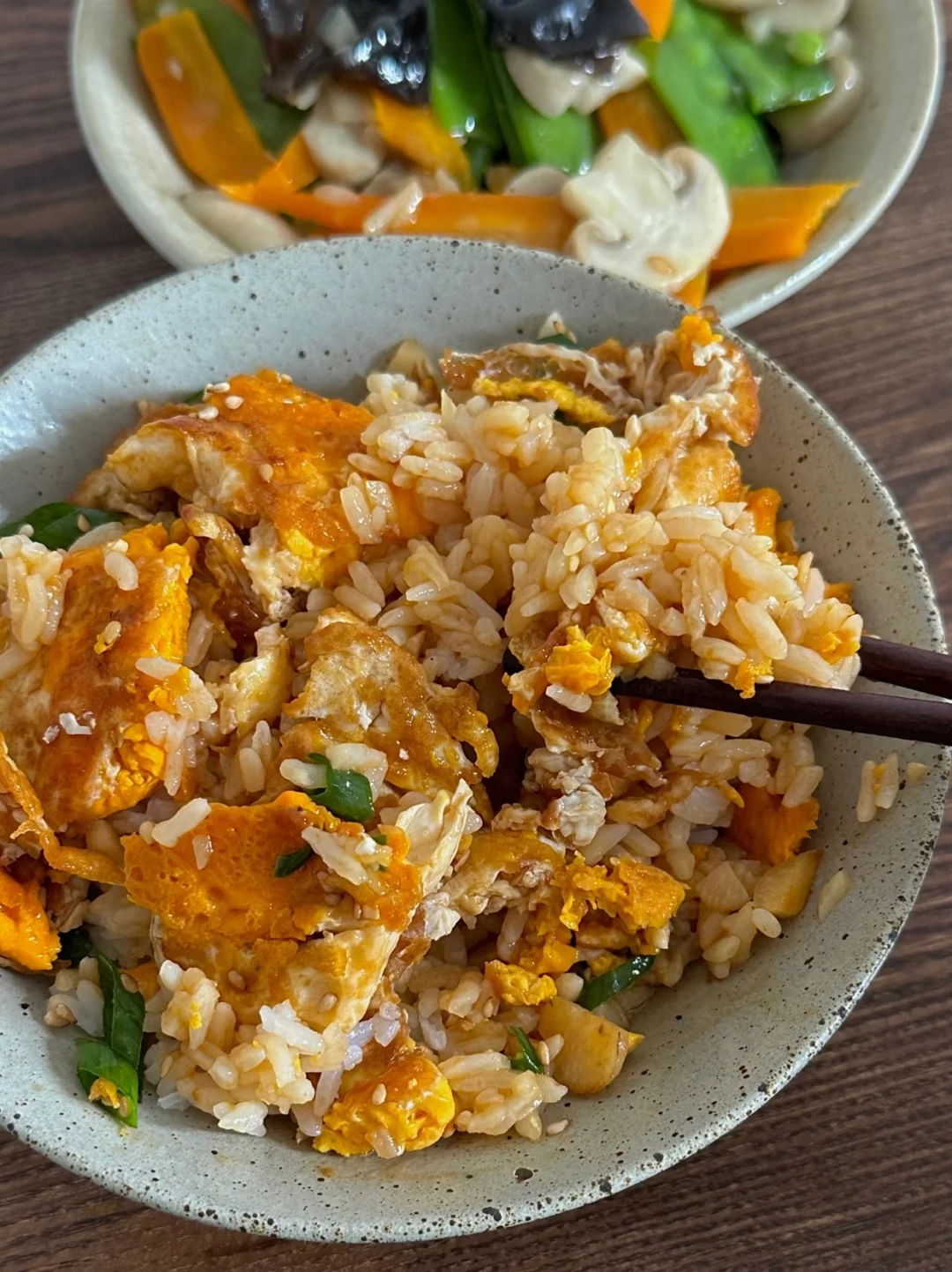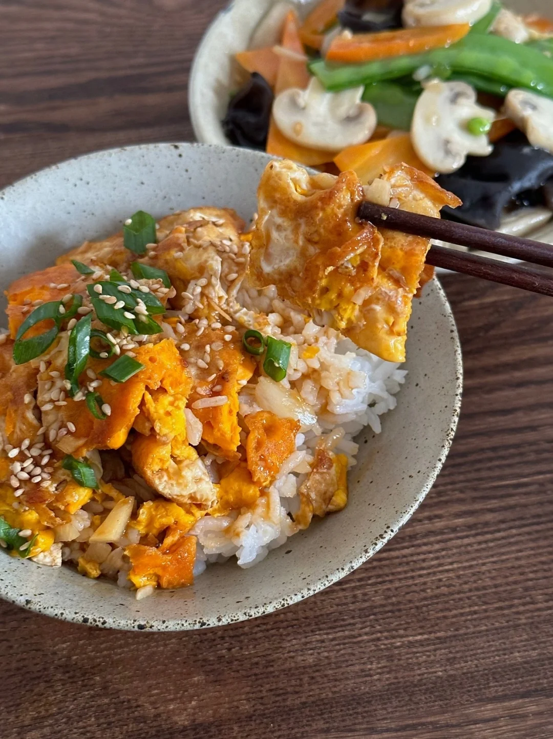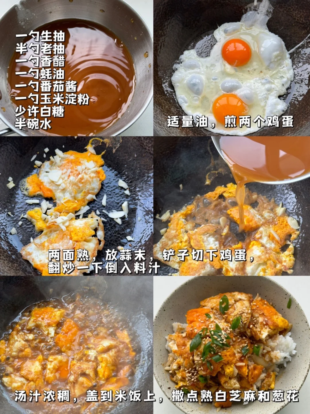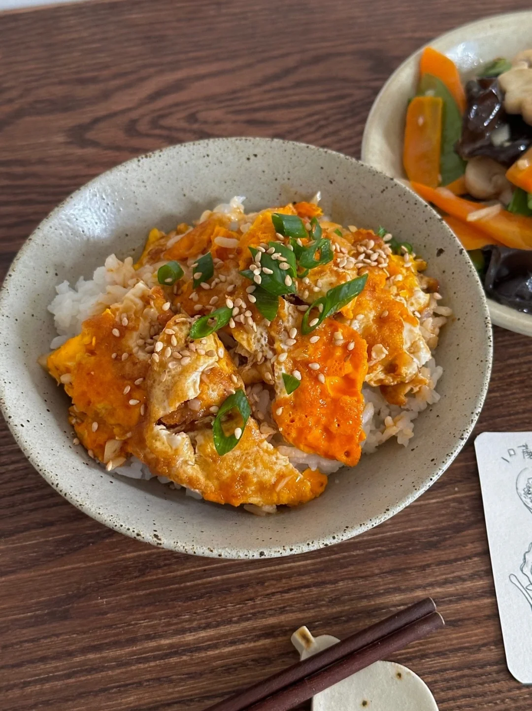 简单来一口,今天蛋盖饭!酸甜口的料汁裹着鸡蛋和米饭,很开胃!
