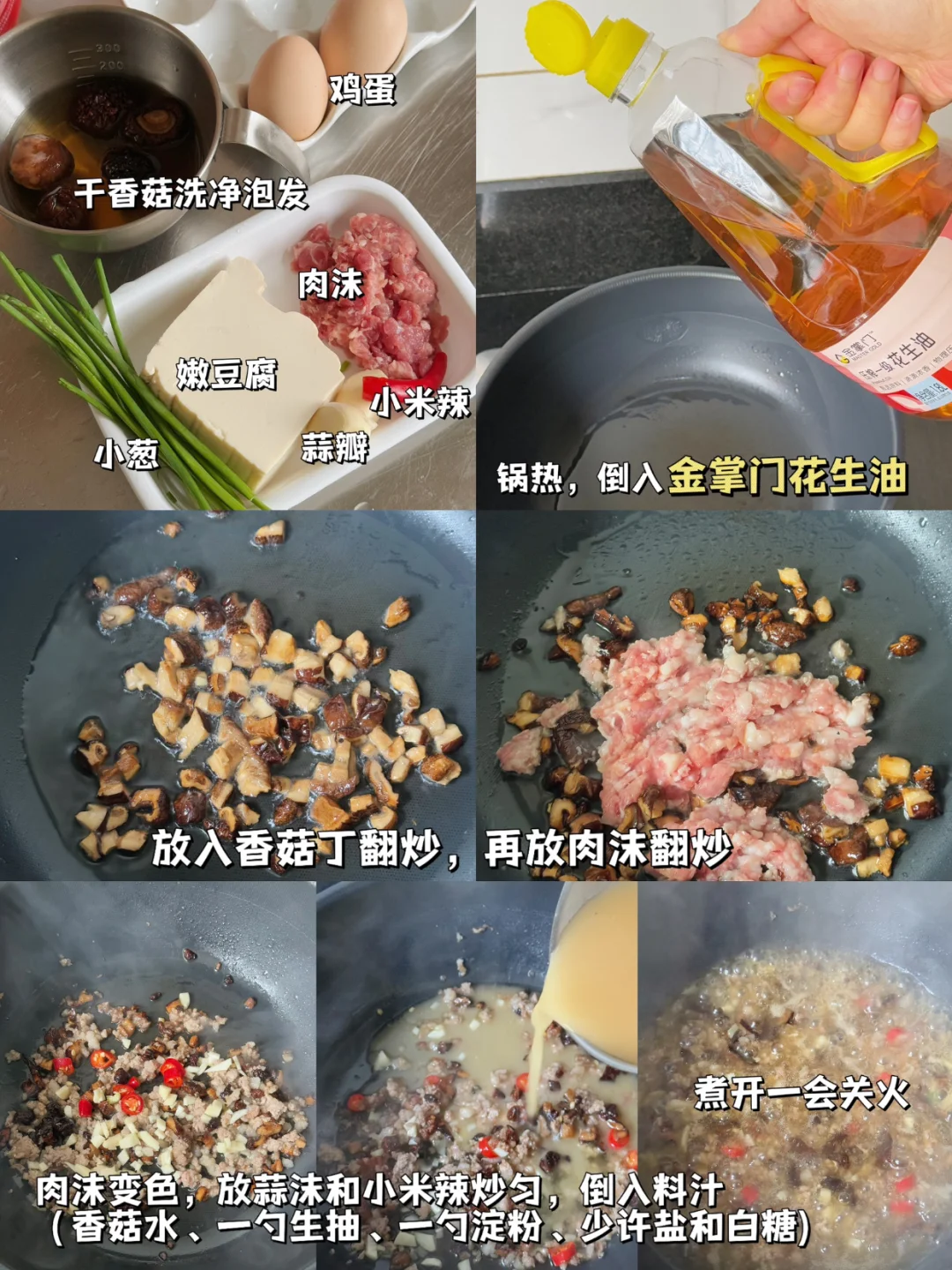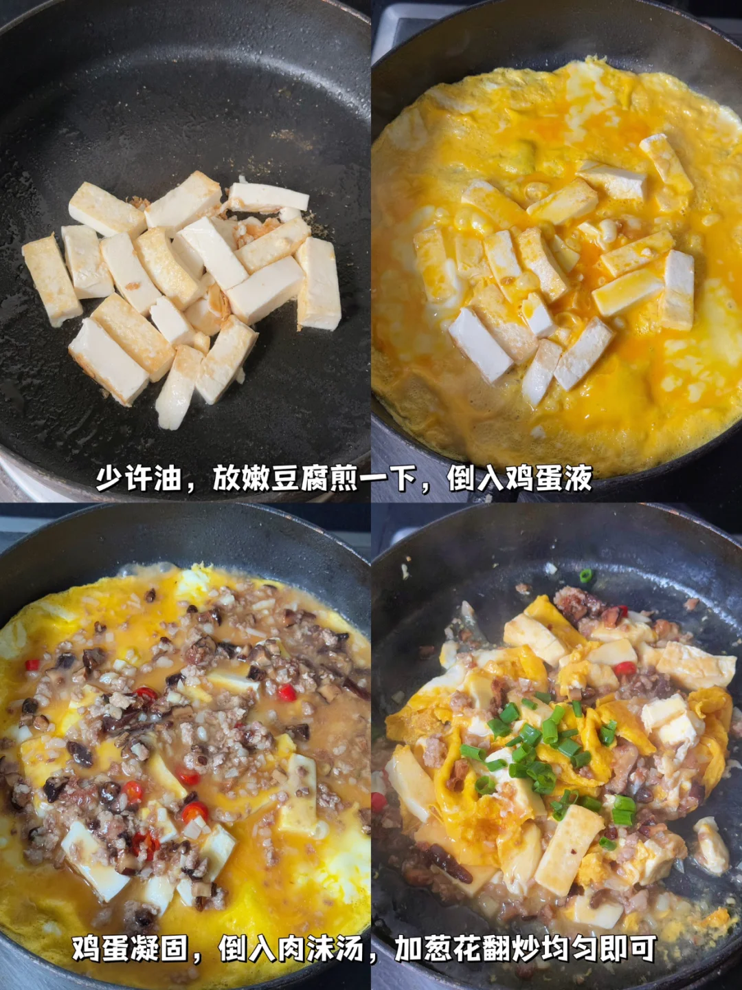 🥘嫩滑的豆腐裹着金黄的蛋液,配上咸香的香菇肉沫,每一口都超有幸福感,拌着米饭吃简直太棒了!简单快手,营养又美味,关键是用对了油,香味直接翻倍!