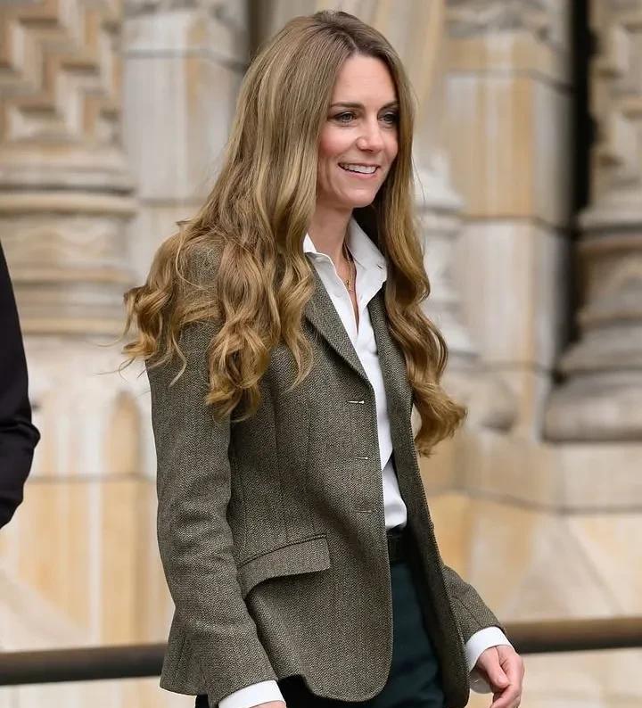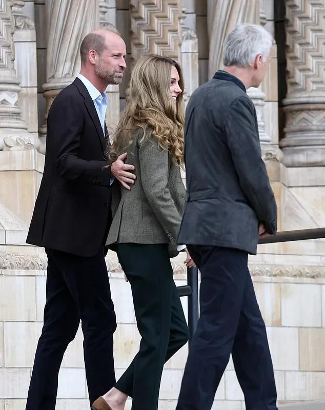 凯特威廉结束夏季假期重返王室职责,他们今天一起访问伦敦自然历史博物馆。 威尔士王妃的新发色好漂亮,她身穿拉夫·劳伦粗花呢外套配上深绿色长裤和尖头鞋,脸上洋溢着笑容。 威廉把手放在妻子的后背,夫妻两人好有爱。