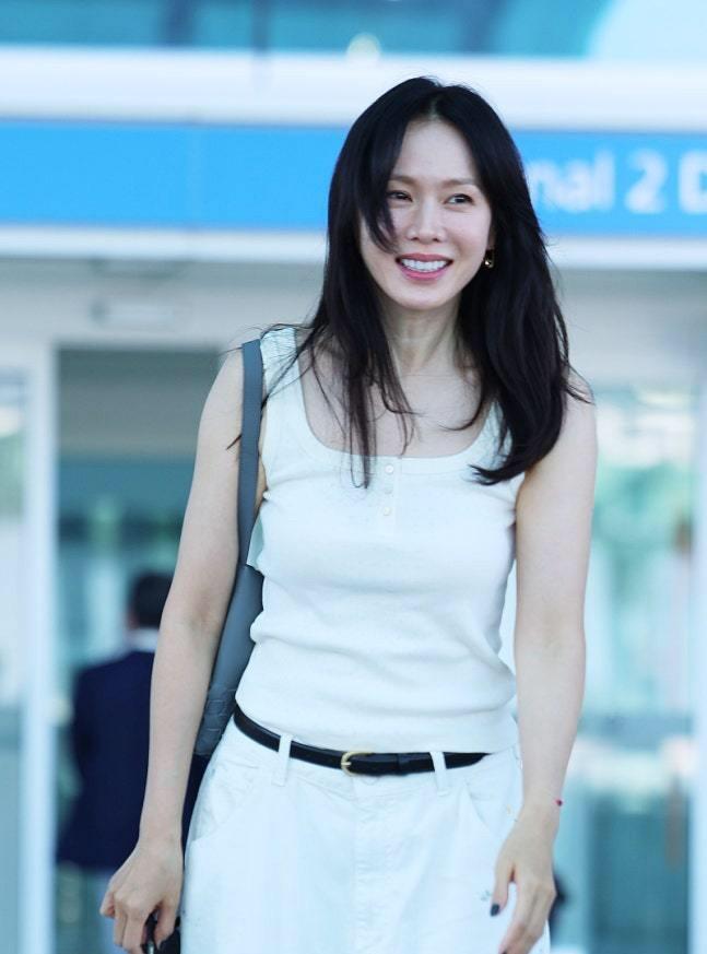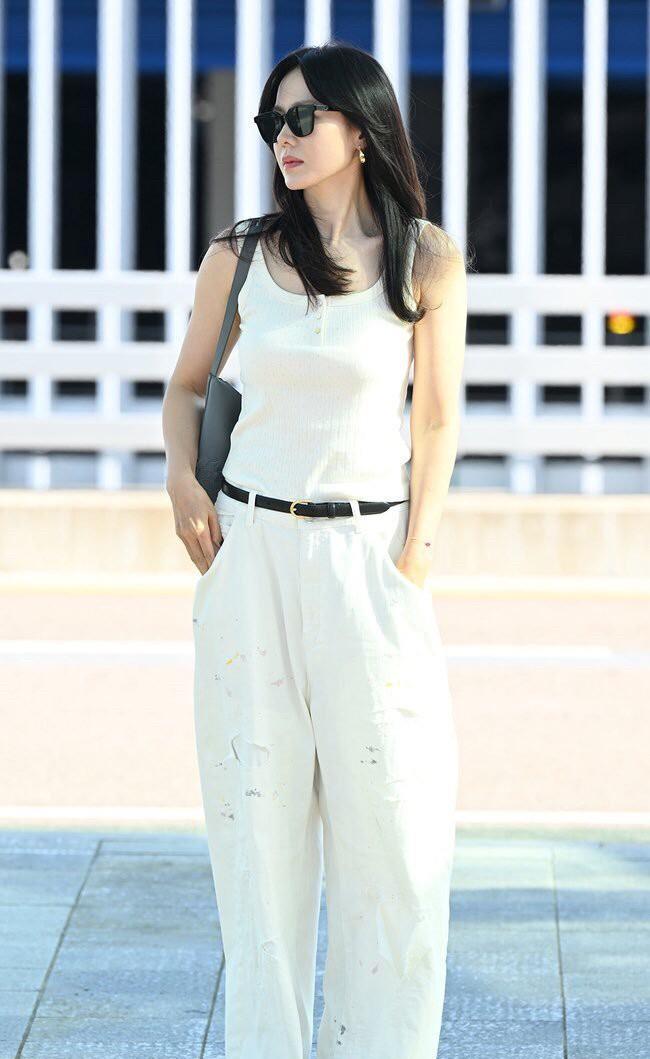 孙艺珍机场照,简单的白色背心搭配白色阔腿裤就已经足够迷人,人怎么可以漂亮成这样啊