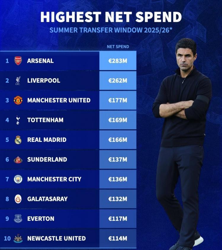 疯狂夏窗、打破记录 德转统计了英超单赛季引援支出记录,今夏共有9支球队创造了单赛季转会支出记录! 其中利物浦大花特花消费4.83亿欧元位居夏窗支出第一,净支出红军也有2.62亿欧元在净支出排行榜中排名第二,阿森纳2.94亿欧元排名第二,净支出中力压利物浦以2.83亿欧元排名榜首! 纽卡2.89亿欧元的支出在英超中排名第三,但在净支出排行榜中,喜鹊仅以1.14亿欧元排名第十,伊萨克一人就卖了1.44亿欧元! 曼联2.51亿欧元引进了锋线三叉戟库尼亚、姆伯莫以及舍什科,排名英超第四,净支出排行中,红魔以1.77亿欧元位居第四! 诺丁汉森林、伯恩矛斯、布伦特福德、伯恩利以及桑德兰都创造了各自球队单赛季引援花费的历史记录! 英超最高的单赛季转会支出记录是切尔西在2022-2023赛季创下的6.3亿欧元!
