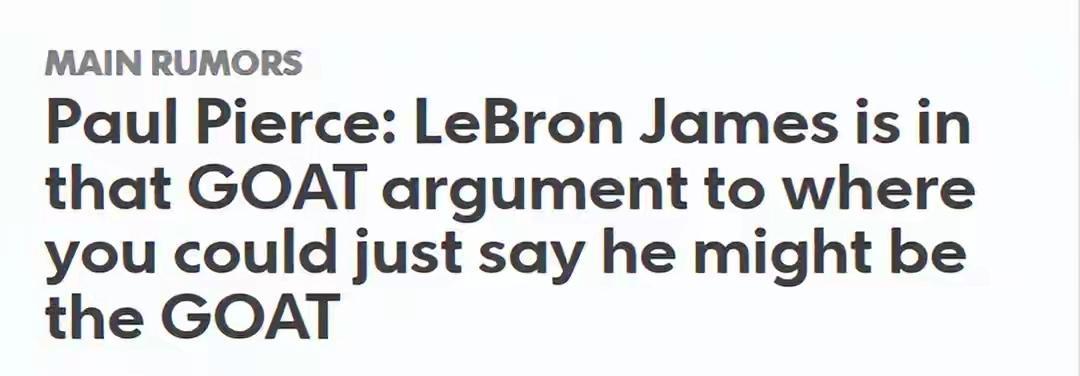 斯托克顿哑火了!又一重量级人物出面力挺詹姆斯! 爵士队名宿斯托克顿曾经怒怼詹姆斯走捷径,坐直升机登顶。 可惜终生无冠,让他的话缺少份量。 首先站出来的是绿军名宿拉里.伯德认为詹姆斯:即使不是最伟大的球星,也是最伟大的球星之一。 而前不久绿军又一名宿,重量级人物出场,力挺詹姆斯。 同样的75大巨星,多次入选全明星阵容和最佳阵容,并在2008年带领波士顿凯尔特人队夺得总冠军,他本人也获得了总决赛MVP。 这些成就使他在NBA历史上占据了重要地位。 更重要的一点是,皮尔斯曾经是詹姆斯的对手,或者说是手下败将,被彻彻底底打服了。 最近上节目谈到2012年东决G6,在他头上砍下45分15篮板5助攻,有名的死亡之瞳。 他迈过那道坎,而这正是他之所以成为史上最伟大球员之一的原因。" 詹姆斯已经是GOAT很久了,各项数据也一直保持出色!但我觉得他的时代已经过去了!