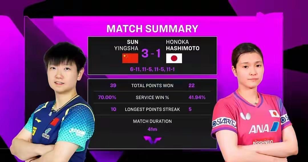 刚结束的阿拉木图站首轮比赛,国乒小将纵歌曼1-3桥本帆乃香(日本)。 桥本真是国乒女队有力的竞争对手, 桥本在美国大满贯3:0战胜钱天一,3:1战胜王艺迪。 2:4负于王曼昱。 桥本帆乃香在更早的横滨冠军赛中第一次被打败,是孙颖莎。 当时莎莎终结了桥本国乒11连败,外协41连败。 但是对于国乒女队其他人,桥本仍然是她们最有力的对手!