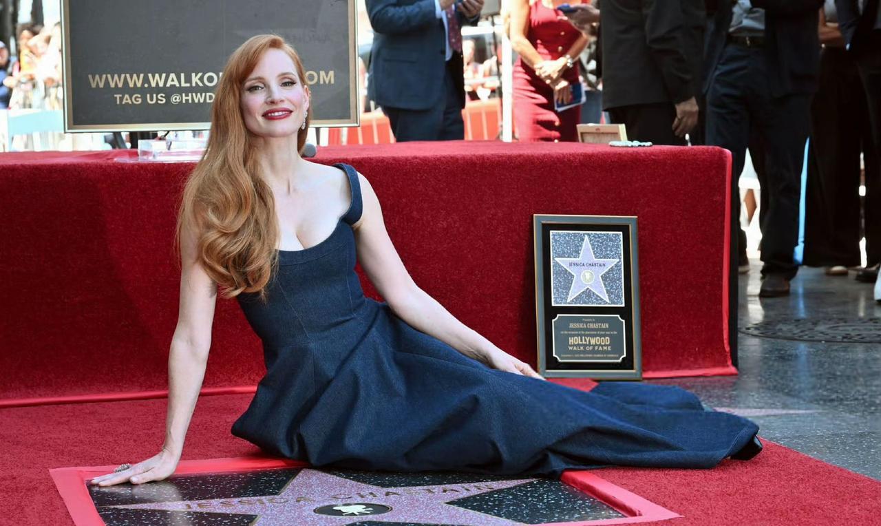 #杰西卡查斯坦#留名好莱坞星光大道!