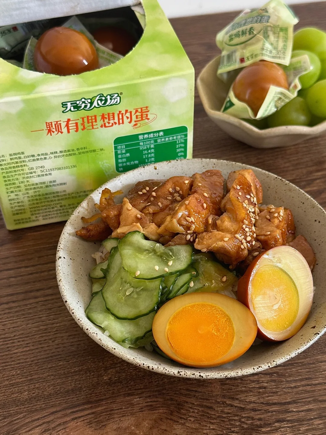 🥚卤蛋是无穷农场家的哦,盖饭、面条放一个好看好吃也方便。这个卤蛋整个口感很湿润,蛋黄也不会干,超入味,外头蛋白也很有嚼劲,为了保证这一口鲜味,严选自有农场的AA级新鲜度的鸡蛋,送到距离农场只有45min 的自有工厂加工,所以吃起来很香。独立包装随身携带也方便,平时包里塞一两个,肚子饿了就可以拿来吃!