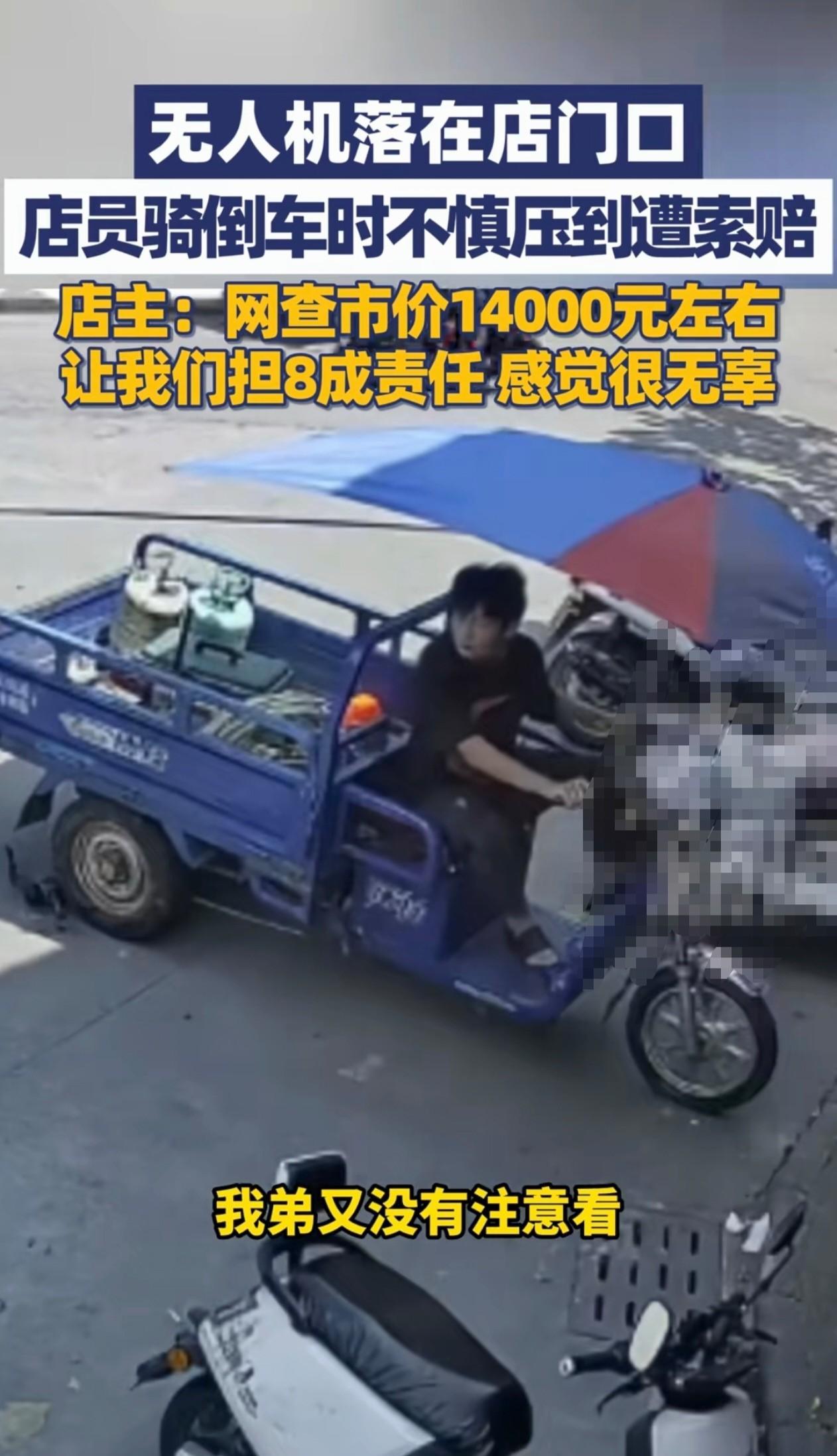 广东广州,一架无人机停在店门口大概两分钟,没有被取回。店员驾驶三轮车在倒车时没有注意到地面上的无人机,不慎将其压坏。无人机操作者在事后要求店家承担80%的责任,赔偿该无人机市场价的80%。店家拒绝这一赔偿方案,并将相关视频公布。 据悉,2025年9月2日上午,在广东广州的一家店门口,一架无人机悄悄降落在了店门前的路上。 周围车流涌动,无人机的停滞并没有引起他人的注意。 在监控视频中不难看出,无人机在店门口停留了两分钟,都没有被操作者及时取回。 这样昂贵且精密的仪器就孤零零的停留在马路上。 期间,店内员工也就是店主谢先生的弟弟,早上在店门口工作,他和往常一样驾驶着三轮车倒车,没有注意在地面上停滞的无人机。 于是不慎将其压坏,店主弟弟感觉压到了什么东西,立即下车检查发现是一架无人机。 情急之下,赶紧和哥哥沟通,表明自己压到了不知物主的无人机。 无人机操作者也就是机主,在事后要求店家承担80%的责任。 机主认为无人机的损坏,主要责任在于店员在倒车时没有仔细观察周边环境。 该无人机的市场价格为1万四千元左右,承担80%责任则需要赔偿1万一千多元。 那对于谢先生和他的弟弟来说,无异于无妄之灾,在自家店门口倒车,却不想损坏了他人财产,还要面临巨额赔偿。 谢先生则认为,无人机降落在公共道路上,并且操作者没有及时处置,任由无人机停滞在道路上两分钟。 机主本人存在重大过错,因此,不应该由店家承担八成的责任。需要赔偿,也应该重新划分责任占比。 于是谢先生拒绝了机主提出的赔偿方案,并且将相关的监控视频发布在网络上。 舆论风向大部分倒在谢先生这边,认为机主没有做到对无人机的管理义务,让无人机停滞在路面上长达两分钟不取回。 这种行为在网友看来是愿意自担风险的信号。毕竟这么昂贵的无人机,谁会把它随意降落在路面上,不及时取回呢? 即便是无人机出现故障,需要临时停靠,操作者也应该认识到自己也是有责任的,所以这样的责任划分比例是不合理的。 目前,此事件仍处在争议之中。店家表示,可能会通过法律途径解决。 此案中,需判断无人机操作者和三轮车驾驶员是否存在过错,以及过错的程度。 这通常被称为“过失相抵”原则。若法院认为店方员工在倒车时未充分观察周围环境存在疏忽,可能会减轻无人机操作者的部分责任。 无人机降落在公共道路后,操作者未及时妥善处置,其行为的安全性及对公共秩序的影响可能会受到质疑。 此类事件的责任划分,法院通常会综合考虑双方的过错程度。 此行为可能被视为未能尽到妥善保管和注意义务,对损害的发生存在主要过错。 若其飞行活动还存在未实名登记、未在允许空域飞行等问题,则过错程度可能更重。 三轮车驾驶员在倒车时未能注意到地面上的无人机,未能谨慎观察周围环境,可能被认为存在一定的疏忽。 因此,在此事件中,无人机操作者要求店方承担80%责任的主张,其合理性有待商榷,最终需根据证据裁定。 目前,此事件的信息主要来源于网络最终的责任认定,需要根据证据进行裁判。 对于这一事件,大家有什么感触吗? (信息来源:大象新闻:2025-9-3)