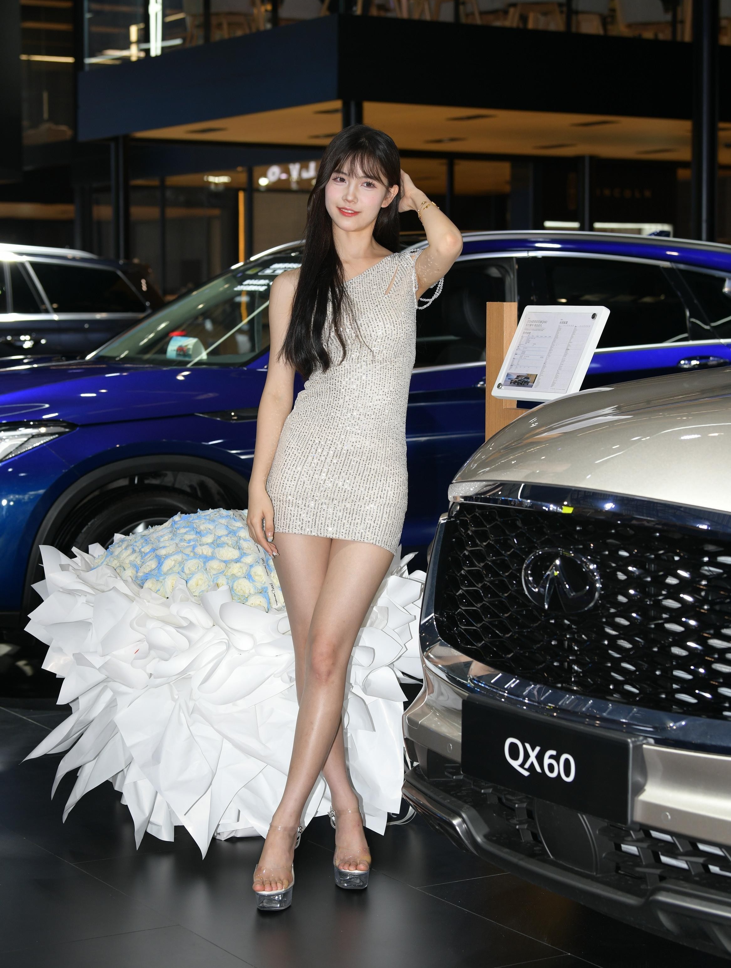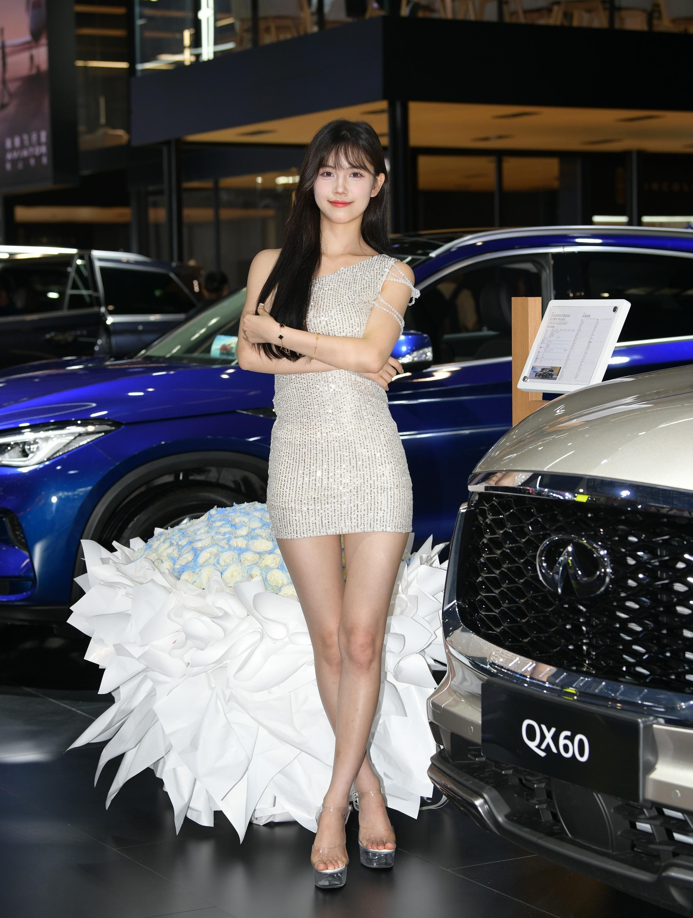 穿银色吊带包臀裙搭配水晶高跟鞋的长腿美女