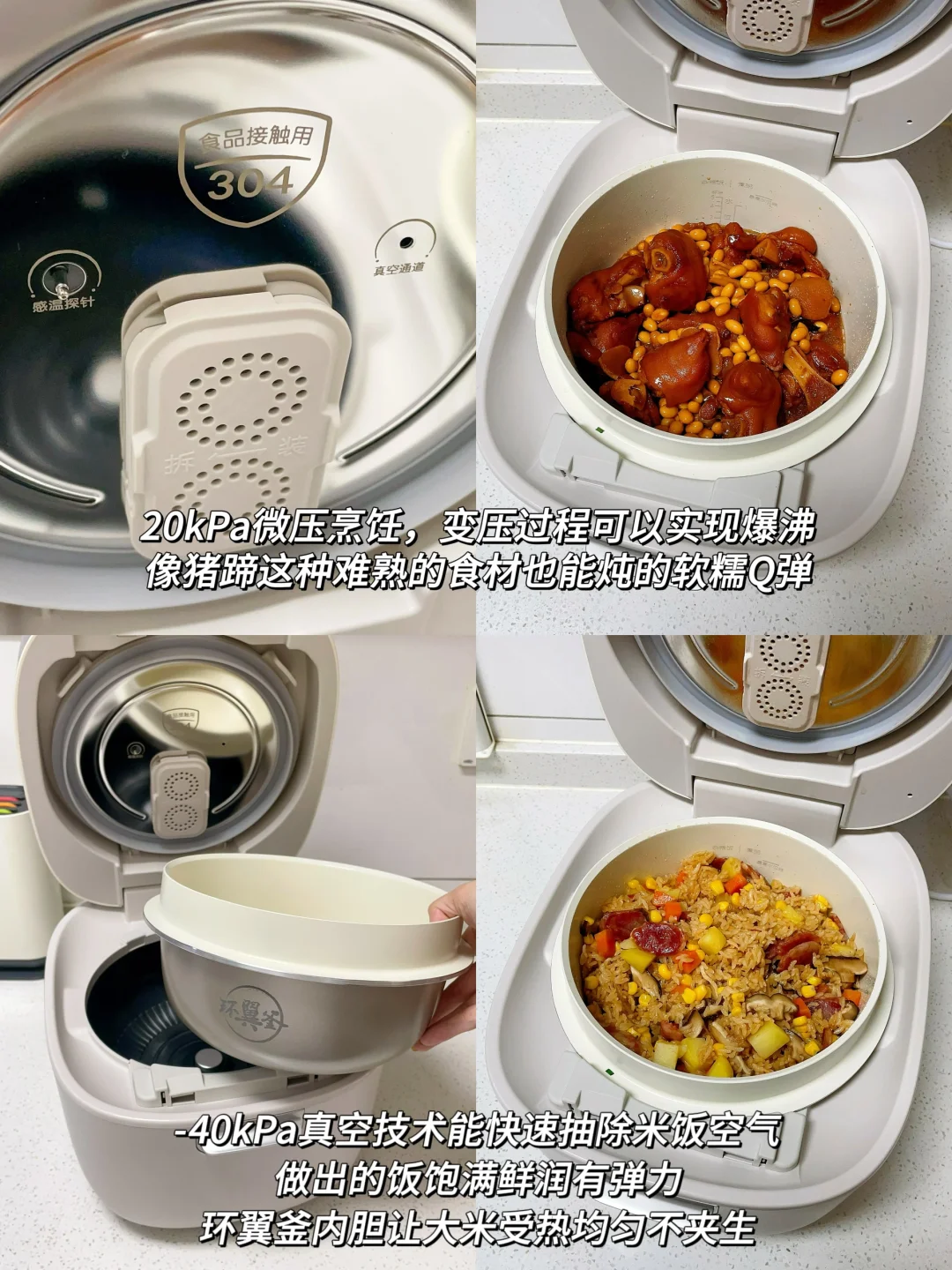 🍚平时焖米饭,用高压锅米饭会粘、普通电饭煲有可能会干硬。这款电饭煲有负40kPa真空技术,快速抽除米饭空气,在真空下大米均匀吸水不夹生。多段IH+上盖加热,搭配专利环翼釜内胆,强劲蓄热加热更均匀,在家也能做出湘菜馆一样好吃的米饭。
