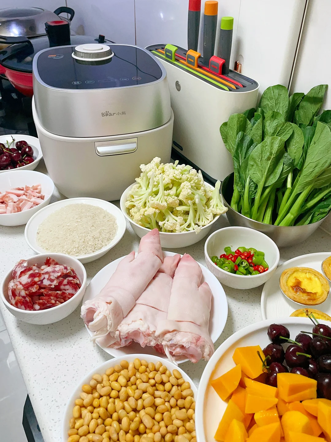 像今天的猪蹄和腊肠焖饭就是用小熊变压电饭煲做的。小熊这款电饭煲在技术上真的做了很大升级,正负变压技术下无论焖米饭还是做各类菜品,口感都提升一个档次。20kPa变压烹饪,像猪蹄这种难熟的食材炖出来都软糯Q弹。一健操作、即使是不会做饭的人也能轻松搞定一道大菜。