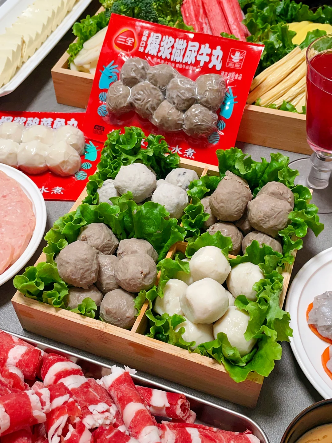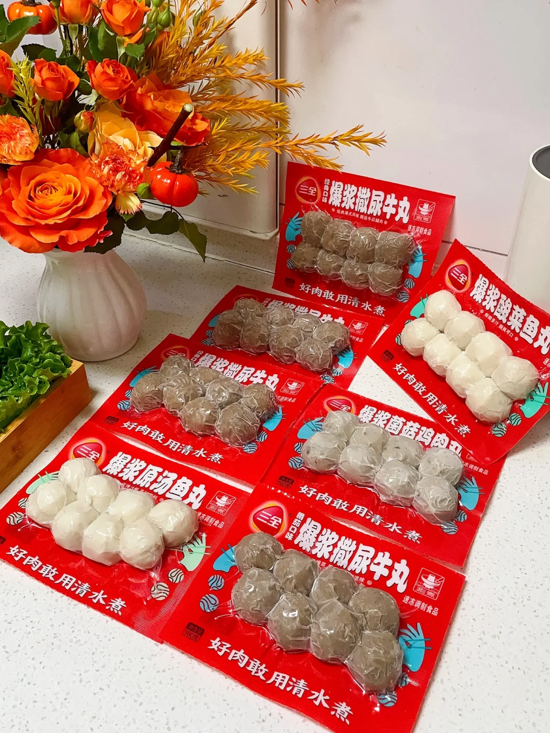 [集美R] 一到冬天,火锅总是家宴中的首选,不仅简单省事,而且还吃的超满足。北方火锅一定是以肉为主的🥩各种火锅丸也很受大小朋友的喜爱。之前经常也担心火锅丸子的肉质问题,今天买了三全爆浆撒尿牛丸,看配料是非常不错的,用的是黄牛后腿肉,经过18000下捶打,入口Q弹爽脆,一口就爆汁。都说丸子好不好、有没有用心,就看敢不敢直接在清水煮,这个牛肉丸可以火锅,也可以煮汤,原味和番茄口味的味道都特别棒,果然三全没有辜负经典。