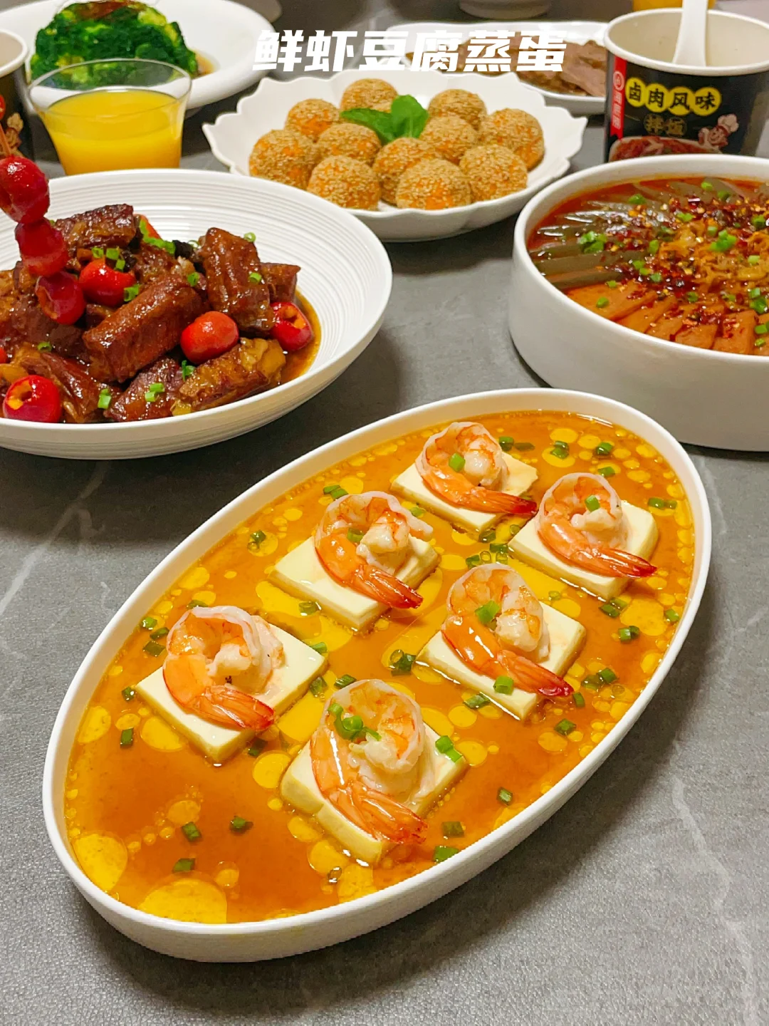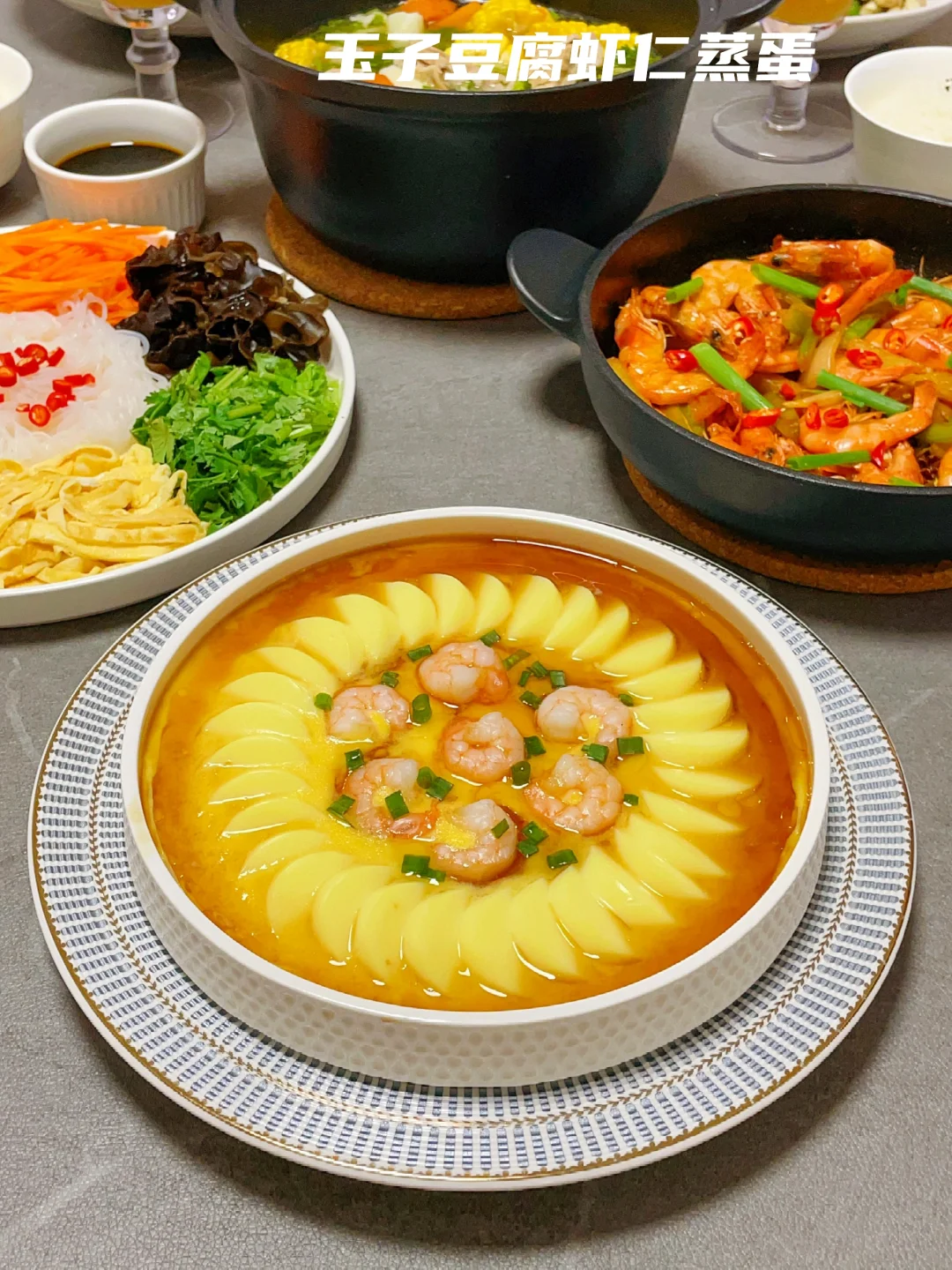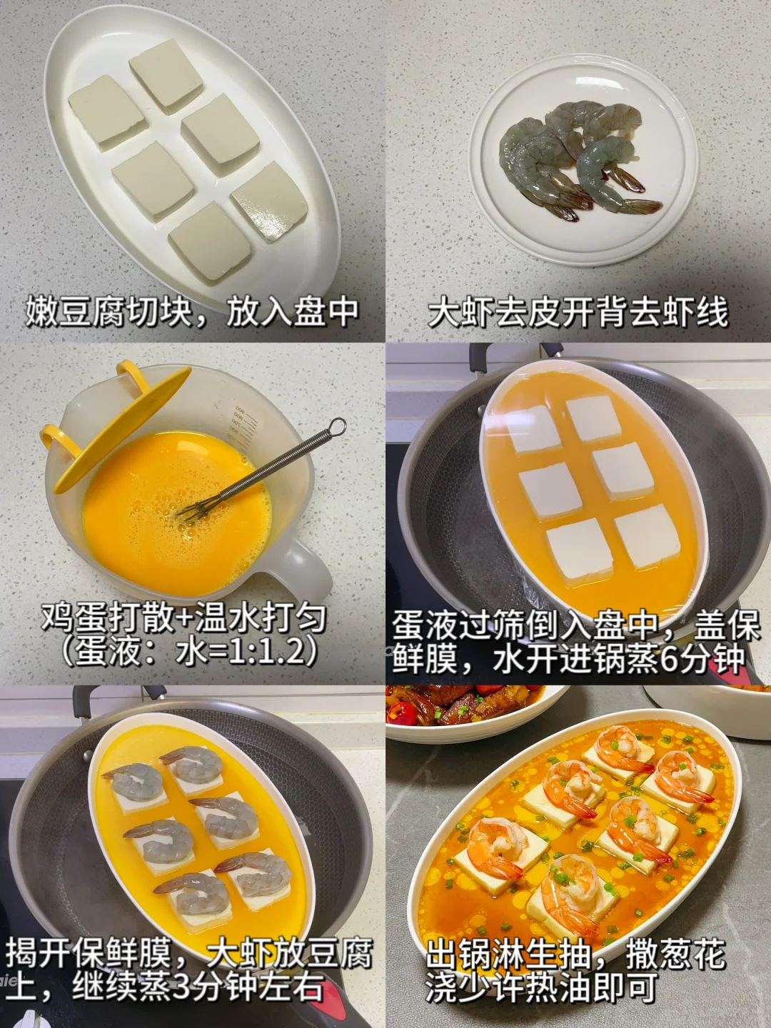4️⃣【鲜虾豆腐蒸蛋】
