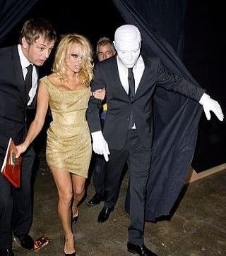 2008年,加拿大女演员,模特帕梅拉·安德森在伦敦参加活动时身边陪伴了一位戴面具