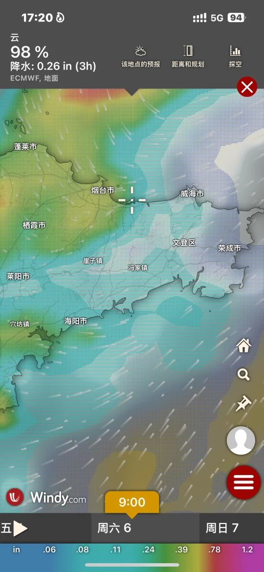 Hi.宝子们好,欢迎来烟台旅游观光!天气基本三天内准确度高!