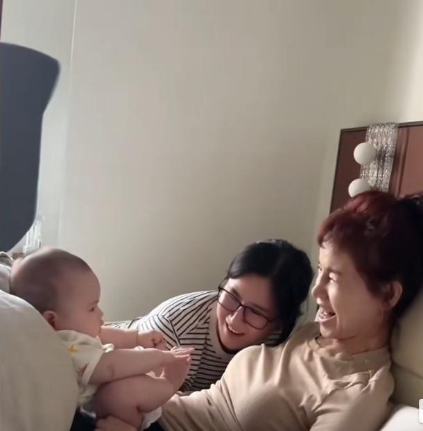 张檬产后长了些许白发,当妈真的不容易。婆婆和姑子从韩国飞到杭州去看张檬和儿子,语