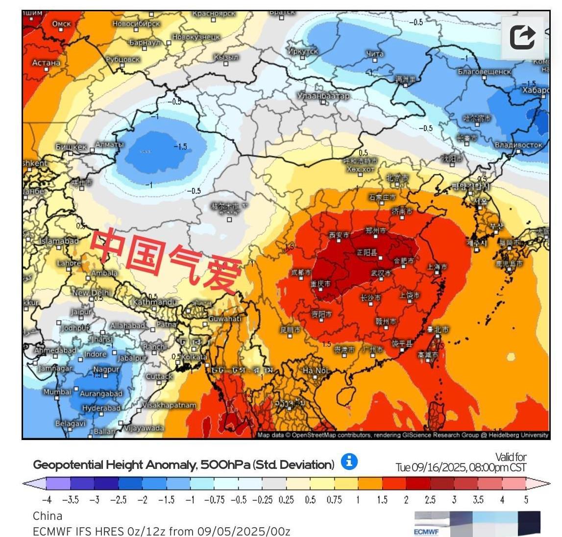 【异常副高】这一报 这个9月恐怕要热的离谱。500百帕形式看,首先中旬冷涡强度调弱了。这样一搞,副高5920线扩大影响范围,不断向内陆地区伸展蔓延。叠加西北暖脊东移辅合,中东部经历更强烈回暖过程。江南迎来高温连续剧。局部地区恐怕破记录。不过时间久远,这种极端形势需要密切观察。