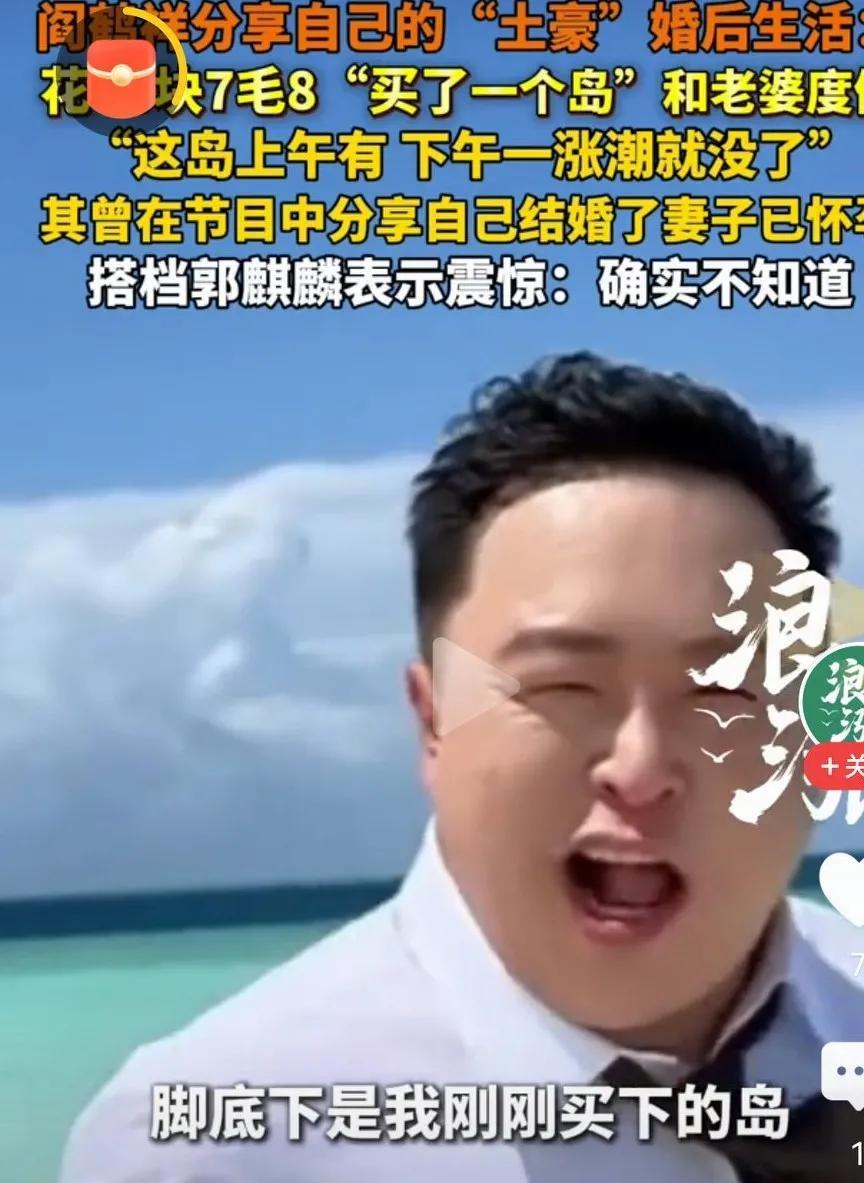阎鹤祥分享自己的“土豪”婚后生活 即日,德云社演员阎鹤祥分享“土豪”婚后生活,自曝花46.78元“买岛”与妻子度假,调侃该岛“上午有下午涨潮消失”。他婚后搬进带电梯的大别墅,减少演出专注陪孕妻待产,被网友赞“德云社模范暖男”,宠妻日常尽显幸福。
