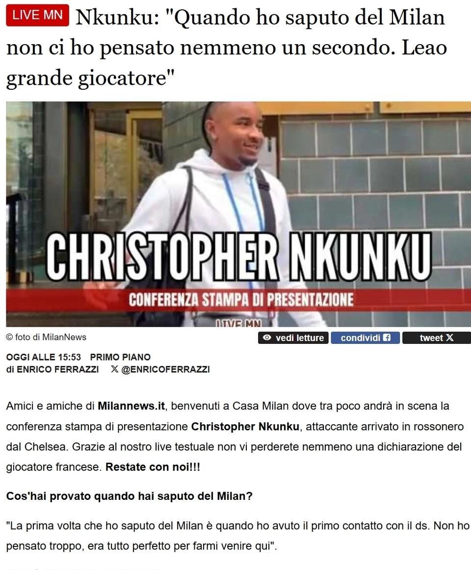 莱奥与恩昆库关系越来越好!恩昆库在米兰的所有第一次都属于莱奥,恩昆库第一次在米兰