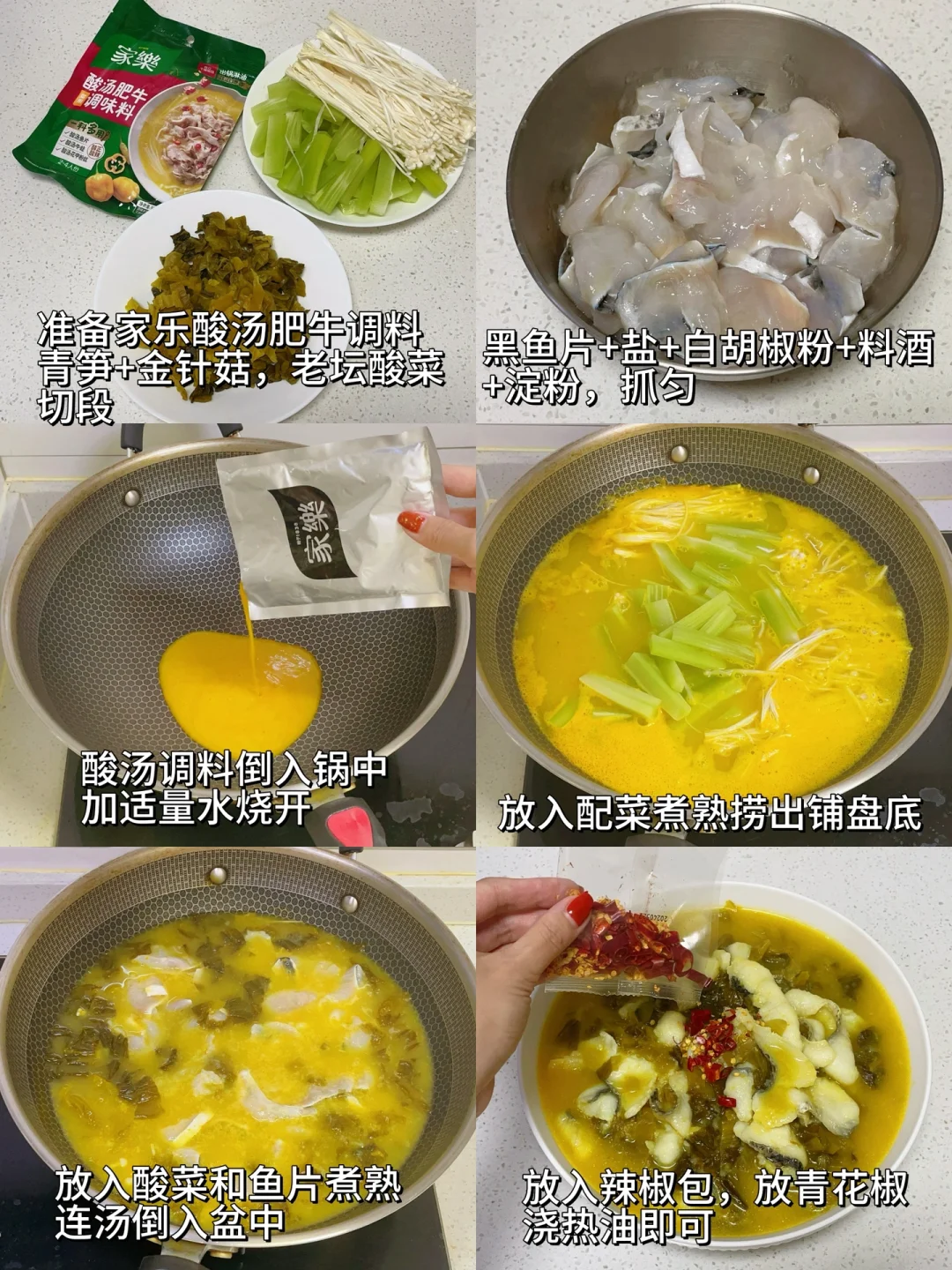 ✅酸菜鱼好不好吃就取决于酸汤料啦,家乐的这个酸汤肥牛调味料汤色金黄透亮,加水将食材煮熟就可以,直接还原饭店的酸汤味,会烧水就会做。