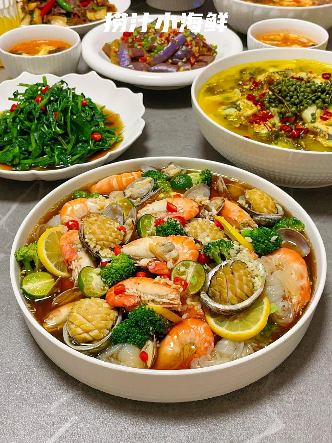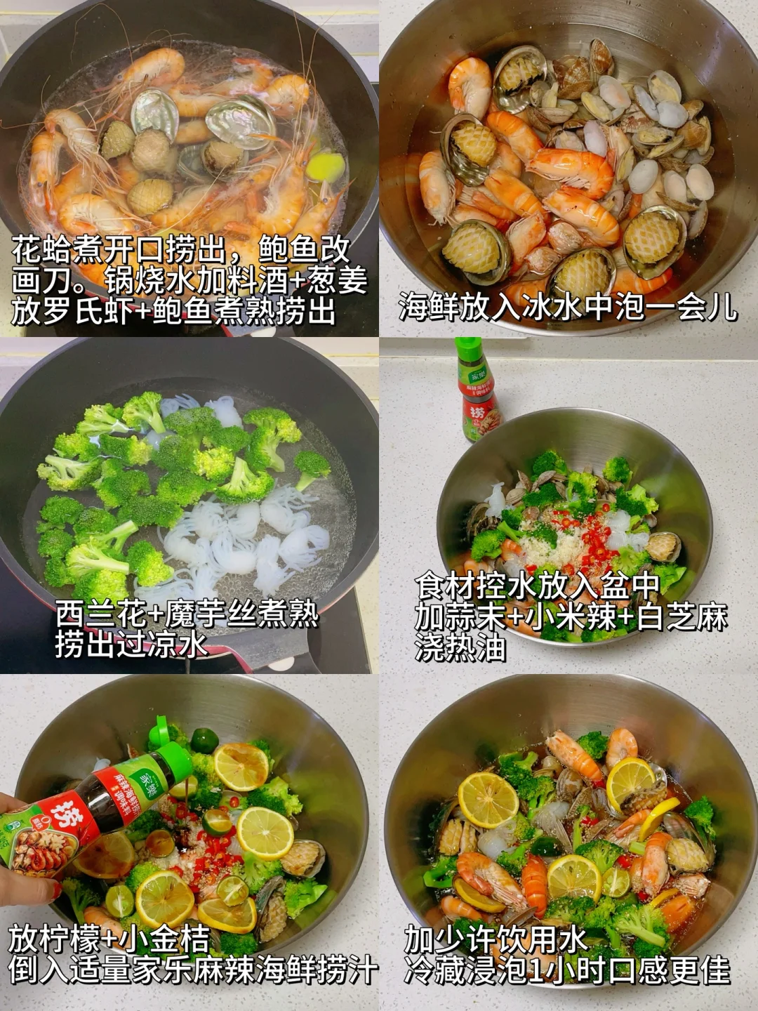 ✅捞汁小海鲜可以根据自己喜好选择将各种海鲜煮熟,加点配菜。直接用家乐麻辣海鲜捞汁就可以,这款捞汁调料真的很方便,5分钟快速入味。O脂肪配上海鲜,吃着完全没负担。
