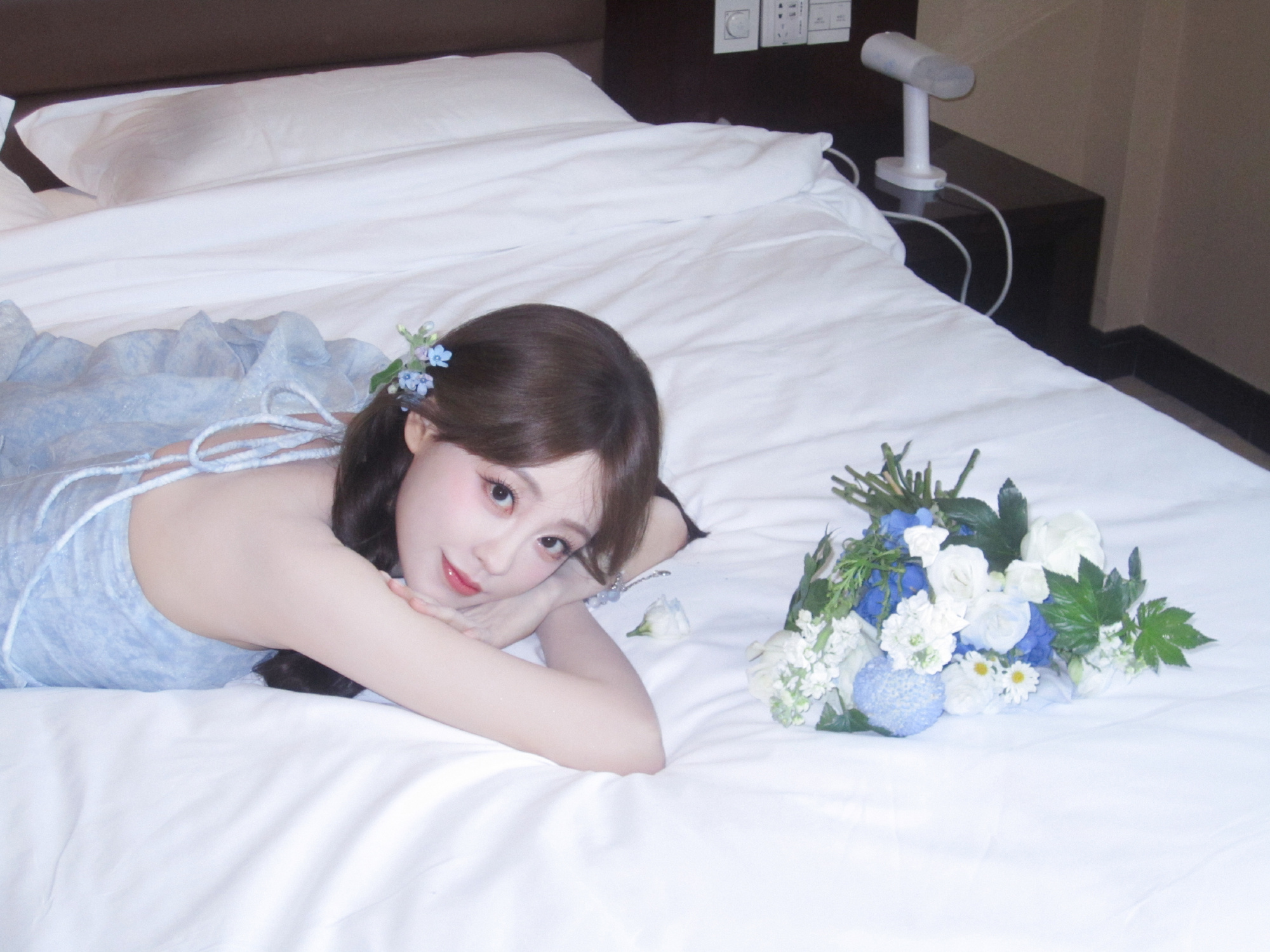 祝绪丹今日私房写真,蓝色裙子穿搭让人赏心悦目,心情都好了