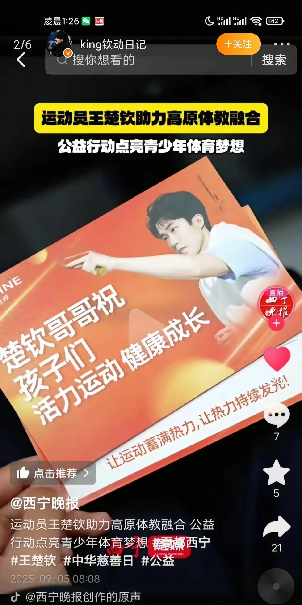 王楚钦这几天物料真多啊! 这是过年了吗? 王楚钦不愧为青年的榜样,9月4日,楚钦又做公益了! 在第10个中华慈善日到来之前, 王楚钦助力高原体教融合公益, 行动点亮青少年体育梦想。 任女士培养的真好,王楚钦是个全面型的复合型人才。 不但事业做的好,其他各项都很加分, 比如:上进心,学习能力,考编考研。 比如:干净,收纳整理能力 比如:会做饭 兴趣爱好也很加分。 王楚钦是现在社会的稀缺性青年!
