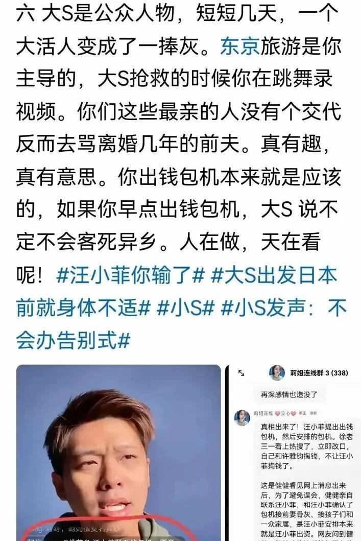 有一种爱情叫始乱终弃,他们叫20年不忘 有一种婚姻叫一毛不拔,他们叫艺术家会纹身 有一种恩爱叫敲骨吸髓,他们叫情绪稳定 有一种体面叫洗劫一空,他们叫坟前深情 有一种离别叫钱尽曲终,他们叫哭的伤心 反正不管人家怎么白眼狼,她们就是要睁着眼说大白话。 是他,既不出钱,还要享受,在后边默默支持大S21告汪小菲,让大S面临无穷尽法庭打官司困扰,为啥,就为了让汪小菲养他和她。 三年中他只管索取从不付出真金白银,甜言蜜语能养家能解大S养家养他困境吗? 如果他要是真有钱还这样,那就只能说他老赖的天花板,吝啬鬼的极致。不过,对称匹配的就是,老s家胡说八道,满嘴里指鹿为马,颠倒黑白,她们配得上这种结局。 台媒爆料具俊晔2024年全年在台湾待的时间不到10天,大S为了追回他,还带着孩子们去首尔找他,住的是酒店而非具俊晔家里,被路人曝光了。 但凡能进人家家门,喝人家一口水,就能被s家吹上了天。既然对于韩国之旅一声不吭,就说明一切。 连卤蛋扔在马桶里的废物,她们都能捧着认为是礼物,都低三下四到这种程度!其他啥做不出来?! 20几岁的时候被这个光头甩掉,快50岁的年纪吃回头草“真爱”了,光头喜欢她老还是喜欢她快绝经还是喜欢她拖儿带女?曾经看似二婚美好的“真爱”直到前夫的断供瞬间原形毕露,在现实面前一文不值。