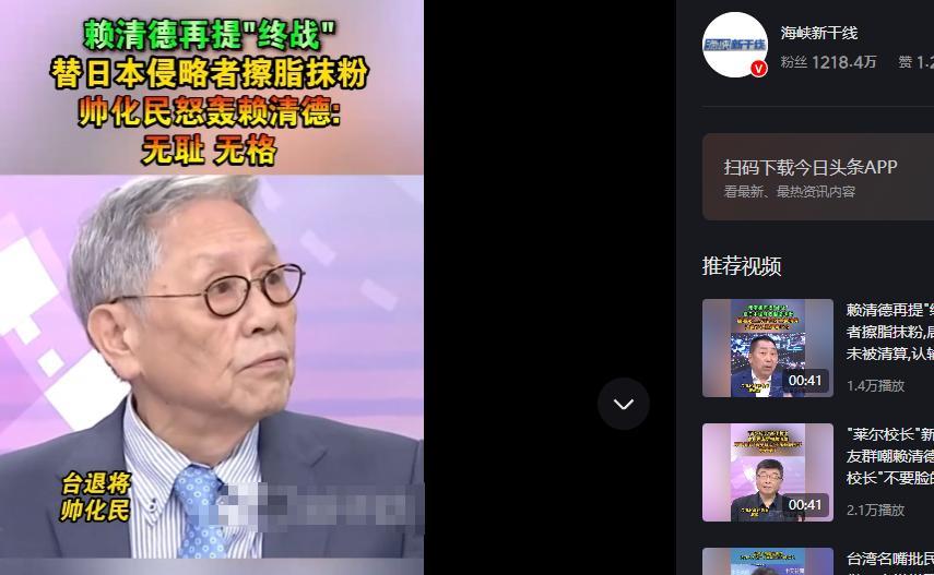 九三阅兵后,赖清德公然替日本侵略者擦脂抹粉!台湾退役将领帅化民怒轰其无耻、无格!