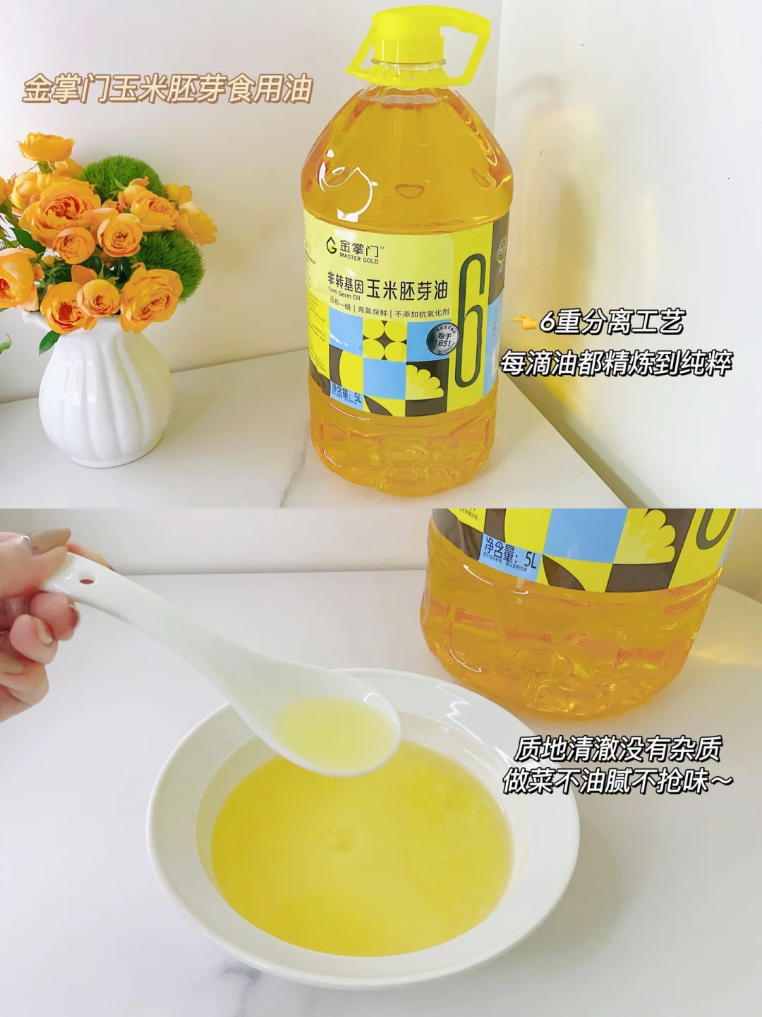 精心挑选后家里换了这个金掌门玉米胚芽食用油,它的味道比较清淡,只带有一点玉米香,炒出来的菜不会有很重的油味就比较爽口,不抢味的特质还能直接激发食材本身的鲜美,不仅提升食物的味道,一家人吃也不担心会不消化。而且这油确实很干净,6重分离工艺没话说~去除色素这些不好杂质的同时,还保留了本身的营养,里面富含的维生素E、植物甾酸,又为食材注入了更多养分,家庭烹饪用它真的安心[赞R]