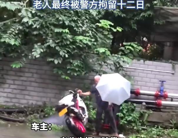 成都,一位老人,为了发泄私愤,在小区里随机找寻发泄对象。当老人看到刘先生的摩托车