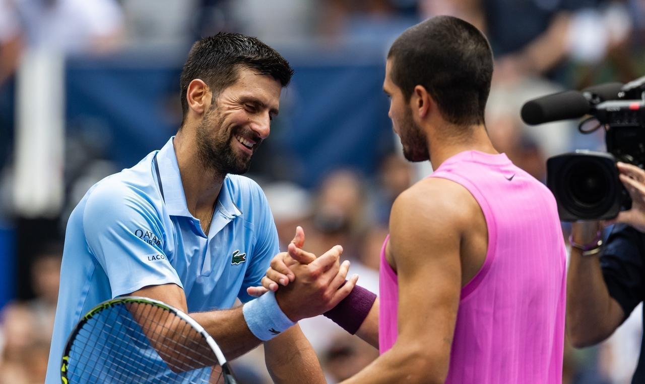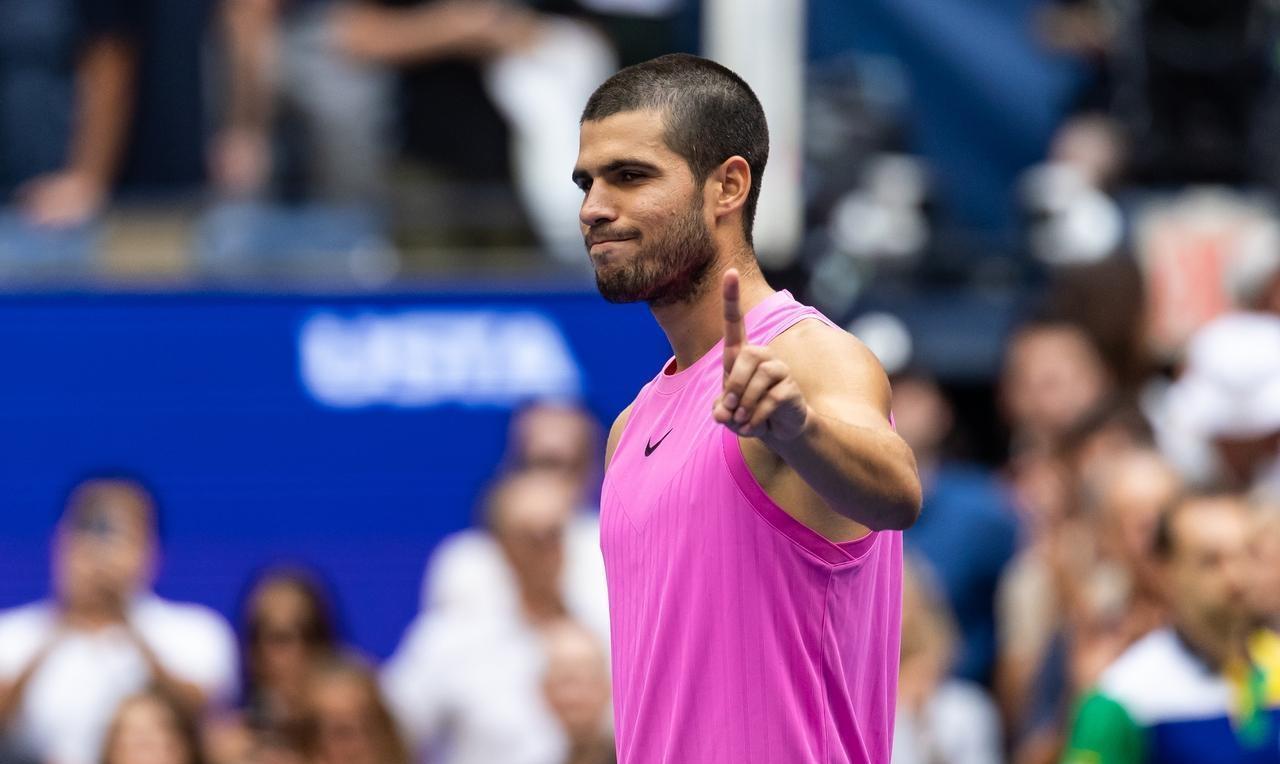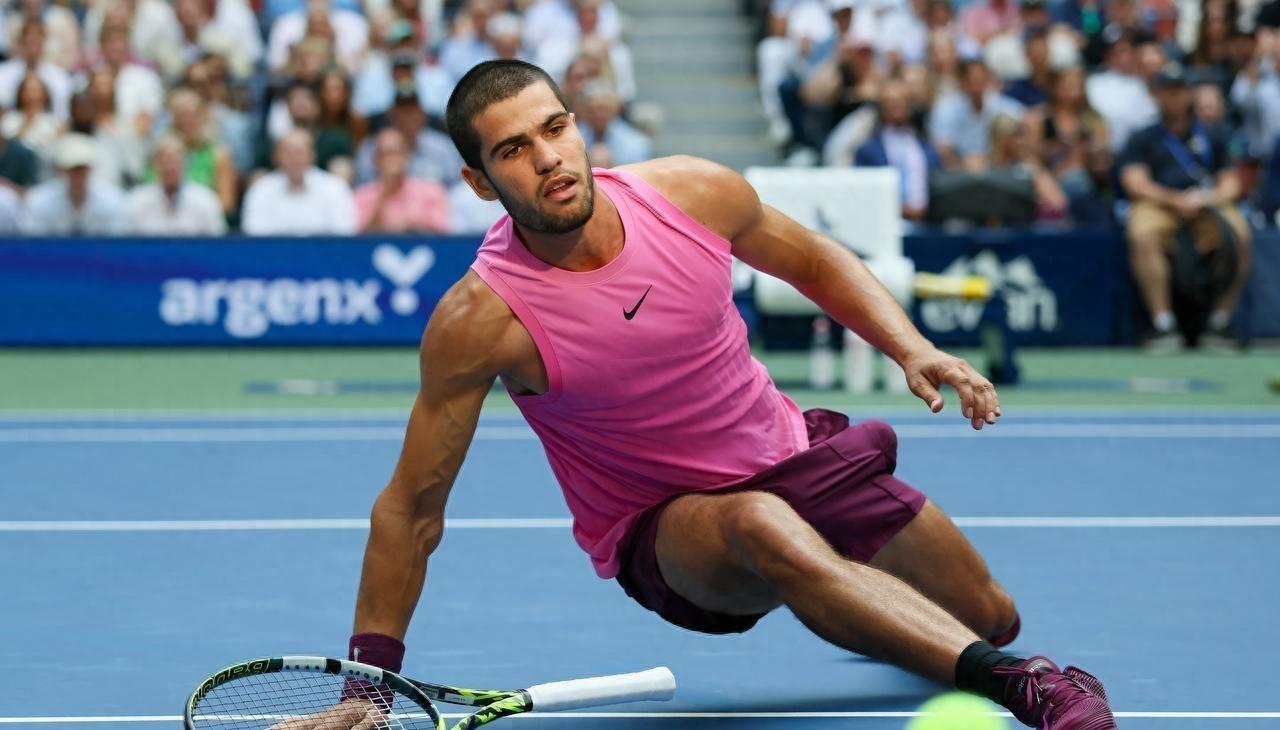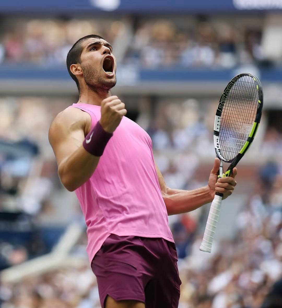 站在美网半决赛的赛场上对阵德约的阿尔卡拉斯,头发已经彻底长出来了!