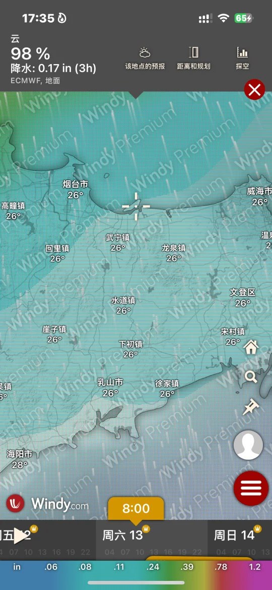 Hi.宝子们好,欢迎来烟台旅游观光!天气基本三天内准确度高!
