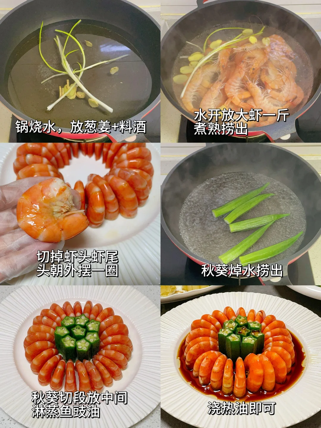 ❹【白灼秋葵虾】