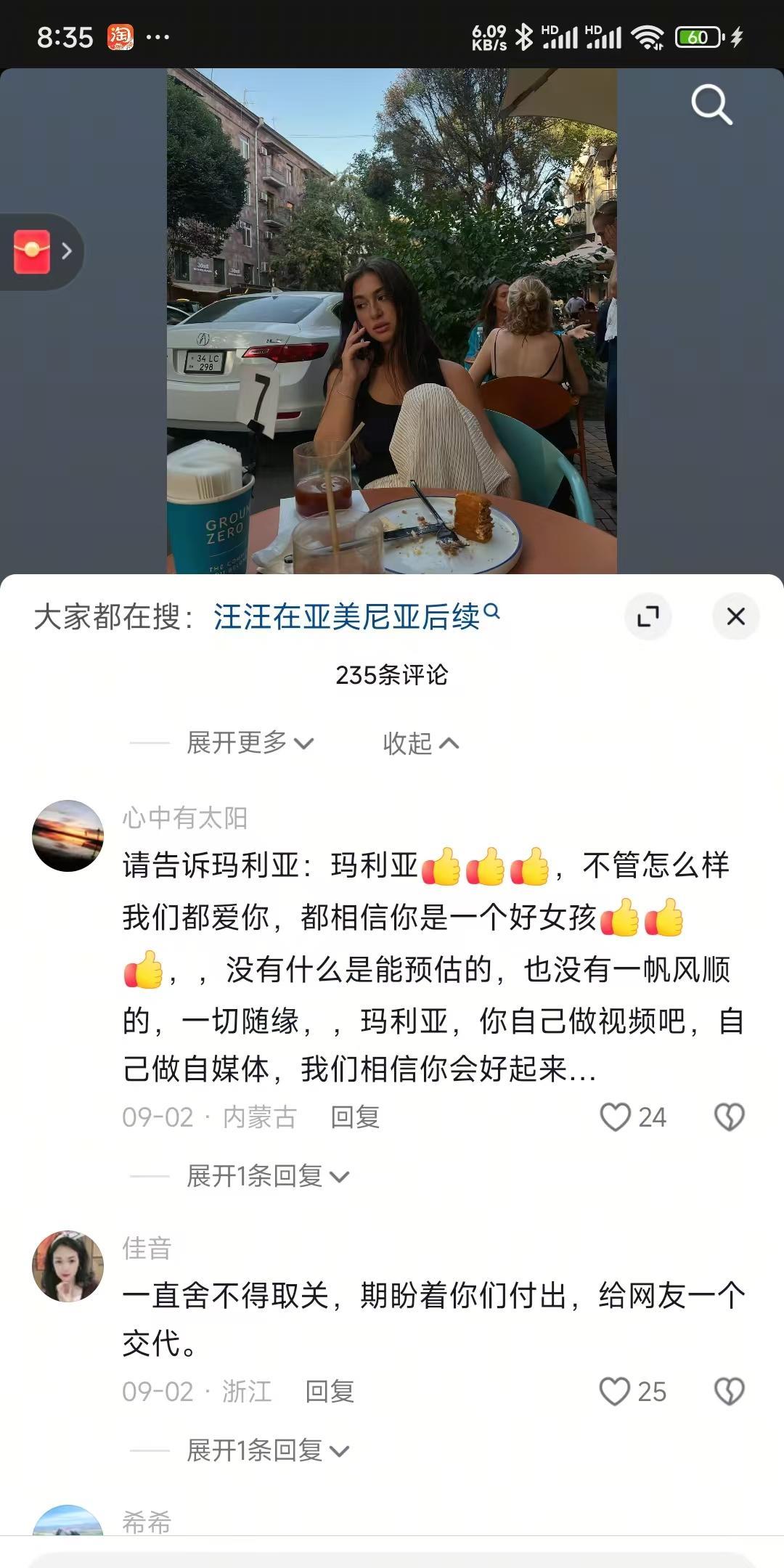 30岁的玛利亚给所有女人都上了一课 昨天刷视频的时候,突然刷到玛利亚那张图,我直接愣住了!你们还记得不?之前看她和汪汪的视频,那叫一个嘎嘎开心,不管是在亚美尼亚市场砍价,还是教汪汪说本地话,一转头就能笑出小梨涡,镜头感贼强。结果这张图里,她坐在埃里温老城区的阳台藤椅上,双手规规矩矩放膝盖上,眼睛盯着地面,连镜头都不瞅一眼,跟换了个人似的。 说实话,我本来想在评论区问句“姐妹咋了”,结果点进去一看,评论区都快吵成菜市场了!有人扒出去年10月她在亚美尼亚湖边的截图,穿黄裙子双手张开对着镜头,底下评论“对比太明显”,还有人杠“说不定就是没睡醒拍的”,我晕,这吵来吵去有啥用啊?更绝的是,发图的好友莉娜啥也没说,就只tag了玛利亚账号,这不更让人瞎猜嘛,郁闷! 老实讲,我之前天天等他们更新视频下饭,他们账号每周二、四、日准更,时长3到8分钟,我都摸透规律了。结果从前年7月12号到现在,整整一年多没动静,我都觉得没意思了!停更第3天,评论区就炸了,“为什么不更新”刷了快3300次,“出问题了吗”也有2000多条,后台私信估计稀了咣当堆成山。 然后更离谱的来了!我朋友发了张模糊照片给我,说“汪汪在山上接受教育”,照片里人穿深色上衣站在个破建筑前,她说“像亚美尼亚北部修道院”,我瞅了半天也没瞅出啥,我说“这不是胡扯嘛”,结果她跟我杠,说127个粉丝群都在传,还翻出去年2月他俩在车里的片段,说“有争吵就是要离婚”,我真是服了!本来想跟她掰扯,后来想想算了,跟传谣言的争啥呀,崩溃! 不过也不是全是糟心事儿,昨天刷到有人搞“云等回归”,每天定时发他们的老视频片段,还标着“第X天等待”,8月1号有人整理了2023到2024的合集,分了“节日特辑”“美食制作”,我立马下载了,这操作也太给力了!有个粉丝说“别瞎猜,等他们自己说”,还被置顶了,下面一堆人点赞,我觉得这话没毛病。 说实话,我翻到那个“亚美尼亚春节”的视频,播放量都456万了,玛利亚跟着汪汪学写“福”字,写得歪歪扭扭还笑,丈母娘在旁边煮饺子,我居然看哭了!去年我过年跟我妈吵架,也是看了这视频才主动低头的,现在再看还是觉得暖心。还有“教丈母娘做麻婆豆腐”那期,389万播放,有人说跟着学做家人夸好吃,这不就是视频的意义嘛,太棒了! 本来我觉得粉丝这样安安静静等,翻老视频也挺好,结果昨天刷到有人说“扒到汪汪成都老家地址了”,我直接懵了!这咋还扒人隐私呢?我妈之前跟我说“人家说做人要留三分余地,别追着别人私生活不放”,当时我没太在意,现在想想真是这么回事。人家停更说不定就是想喘口气,结果粉丝还去“人肉”,这不是膈应人嘛! 其实咱们喜欢看他们视频,不就是因为他们带来快乐嘛?但快乐不能建立在别人的不舒服上啊。以后再遇到网红停更,咱别瞎猜、别传谣言、别扒隐私,等他们自己说就行,毕竟人家也是普通人,需要自己的空间,对吧?#汪汪在亚美尼亚#