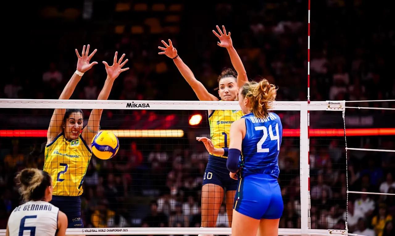 逆天了!巴西女排三局18个拦网! 2025女排世锦赛半决赛,巴西女排2-1(25
