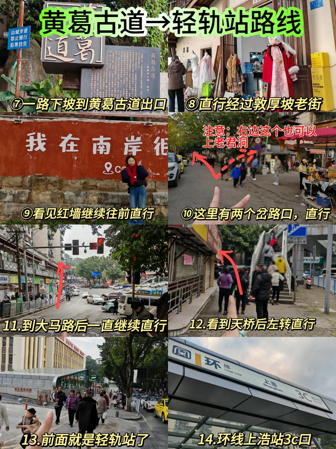 ✅下坡游玩路线:黄桷垭老街→黄葛古道→轻轨站(路上会经过三毛故居、敦厚破老街)