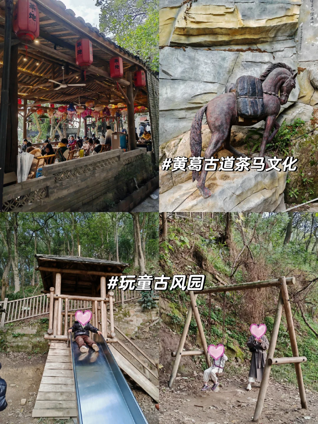 3、黄葛古道:一条千年古道,是重庆版的“丝绸之路”,现在一路上还能看到当时人、马运输货物的雕像。个人更建议阳光好的时候来,绿树成荫,真的有种绿野仙踪的感觉。还有就是,路上会经过玩童古风园,里面有滑梯、秋千、跷跷板,还挺好玩的。