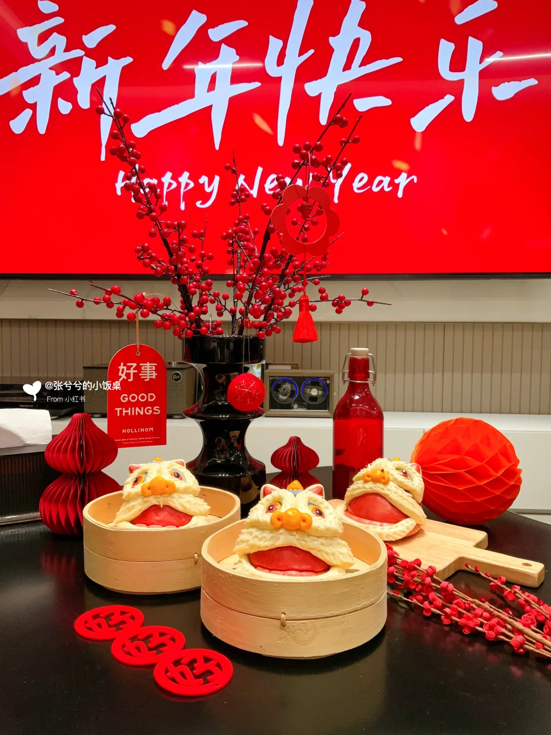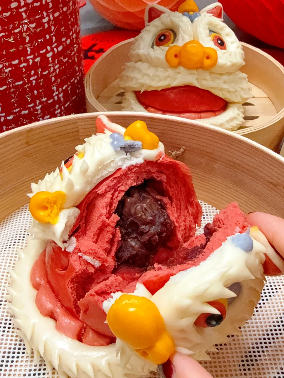 [向右R]这非遗工艺制作的馒头颜值太高了,摆上桌马上就有年味,而且配料干净,没有化学合成色素。进锅蒸20分钟就可以啦,出来松松软软的,里面是豆沙馅,超好吃![派对R][派对R]