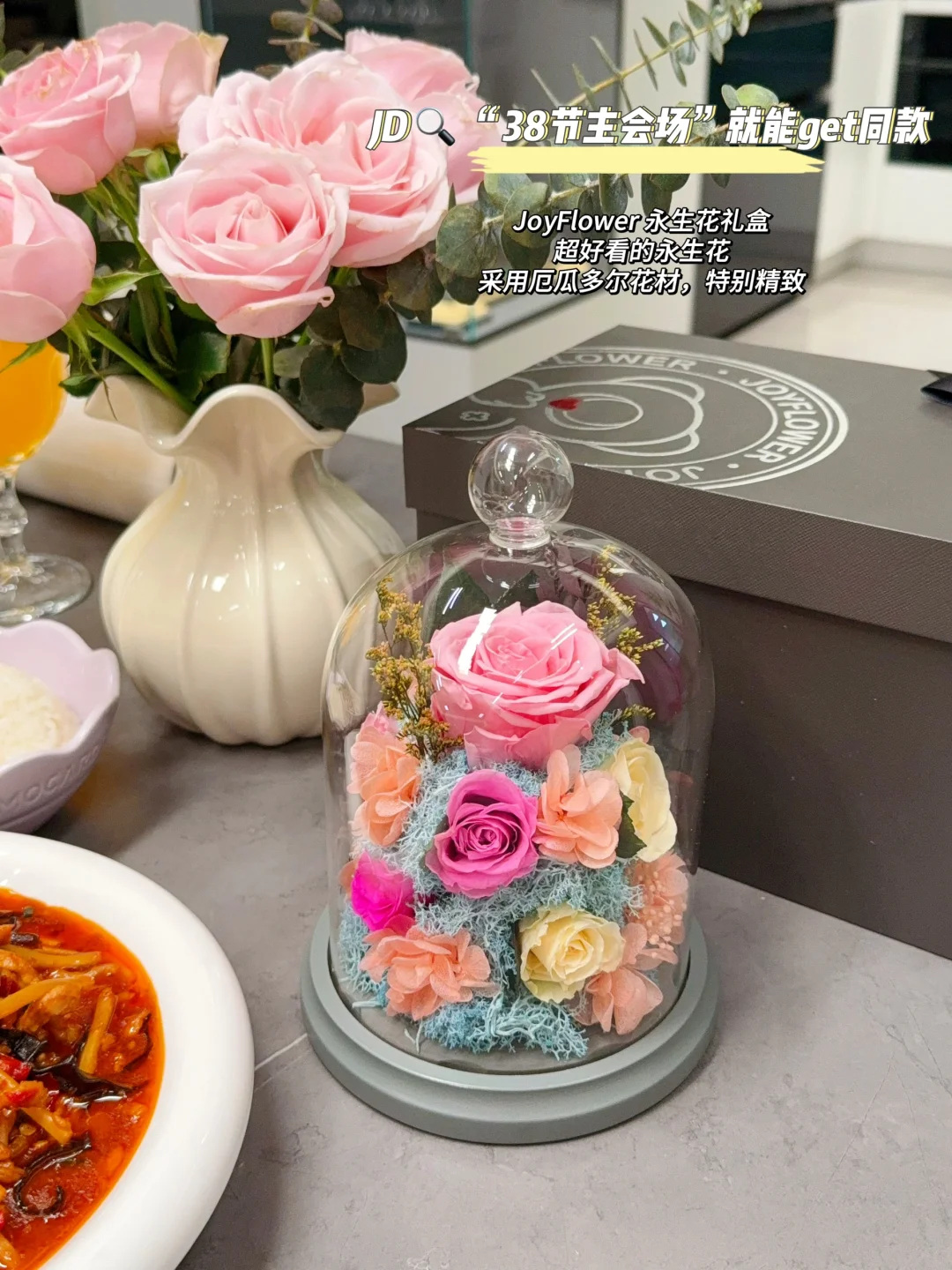 赶着活动,我直接拿下星巴克多肉花园粉色陶瓷吸管杯,粉粉嫩嫩的可太少女心啦!杯盖是立体的,容量也很大,配了吸管用着很方便!另外,先生还送了JoyFlower的永生花礼盒,特别精致、花材搭配得也好看~