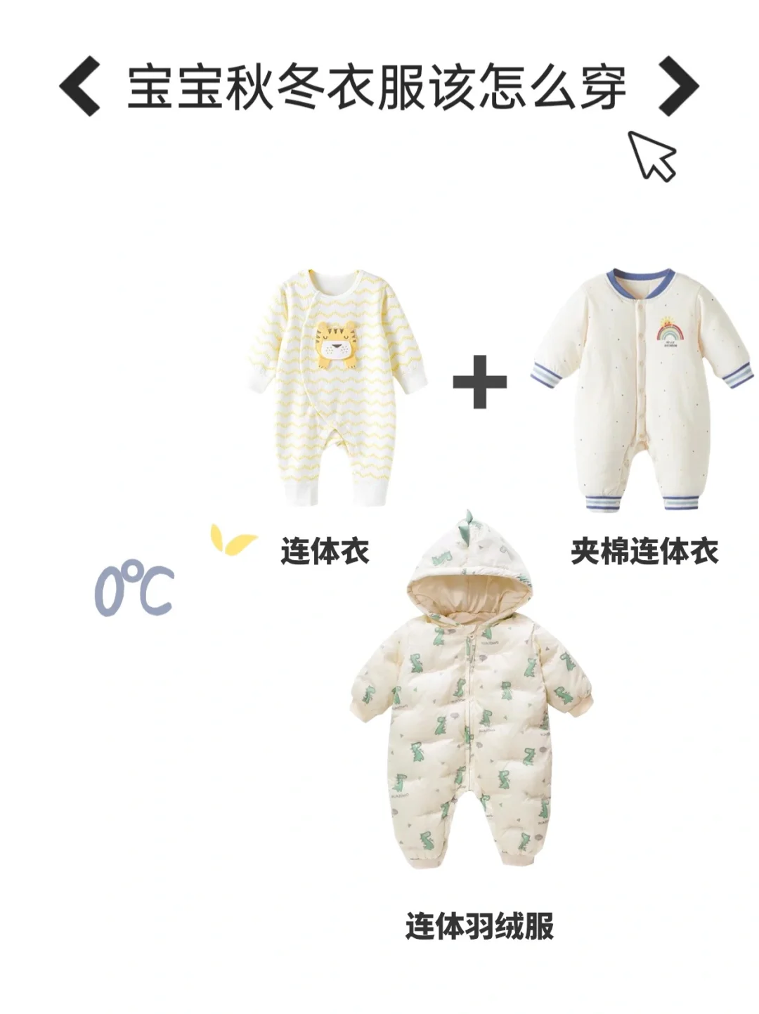 0°C:包屁衣➕厚夹棉连体衣➕连体羽绒服