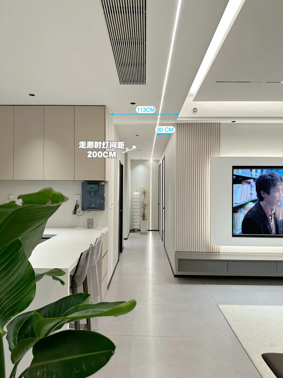 ▪过道线性灯:这条线性灯拉伸了我整个客厅的空间感,看起来客厅更大,我选的也是8w/米的低压灯带配合铝型材使用,记住这种灯带不能在家里做太多,有一条即可,太多显得杂乱,而且一定要一公分的,太宽也不好看~